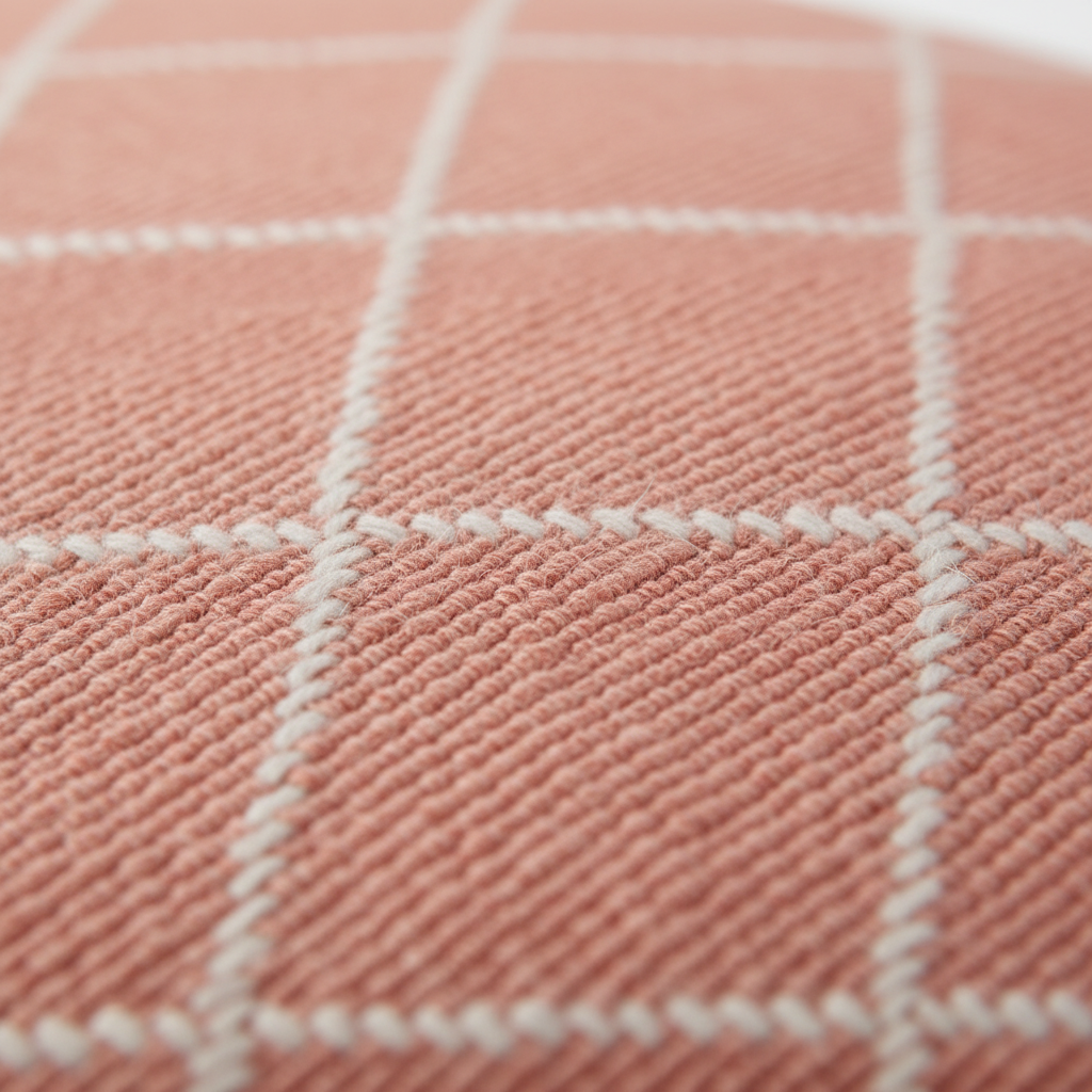 Kvadratisk bilde av rosafarget putetrekk i jacquard bomull