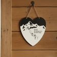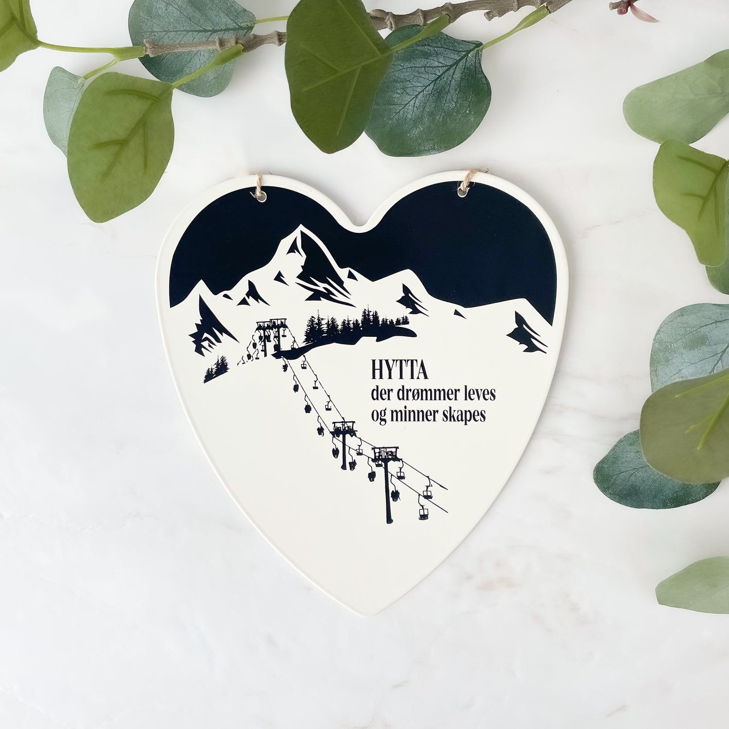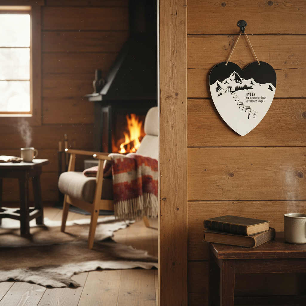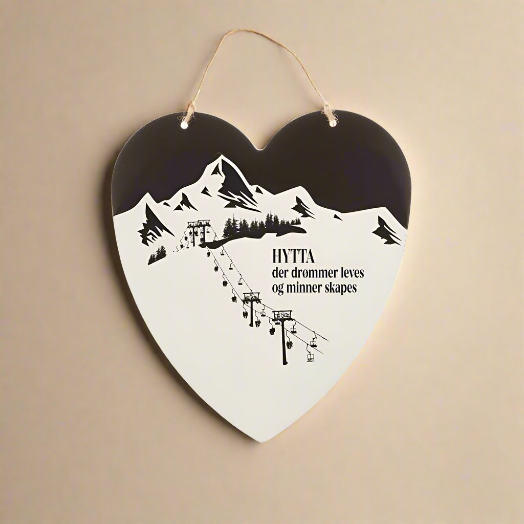 Vacker hjärtformad skylt med texten "HYTTA där drömmar levs och minnen skapas". Den perfekta skylten för stugälskaren!