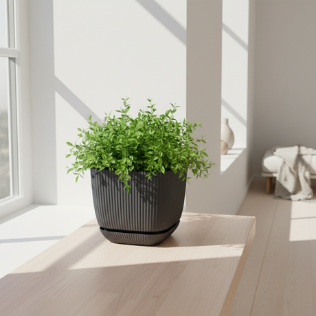 Sidebord med treplate og hjul sort 55 x 31 cm