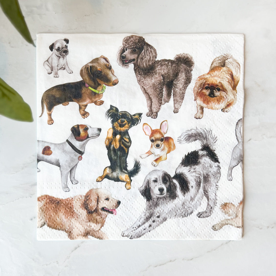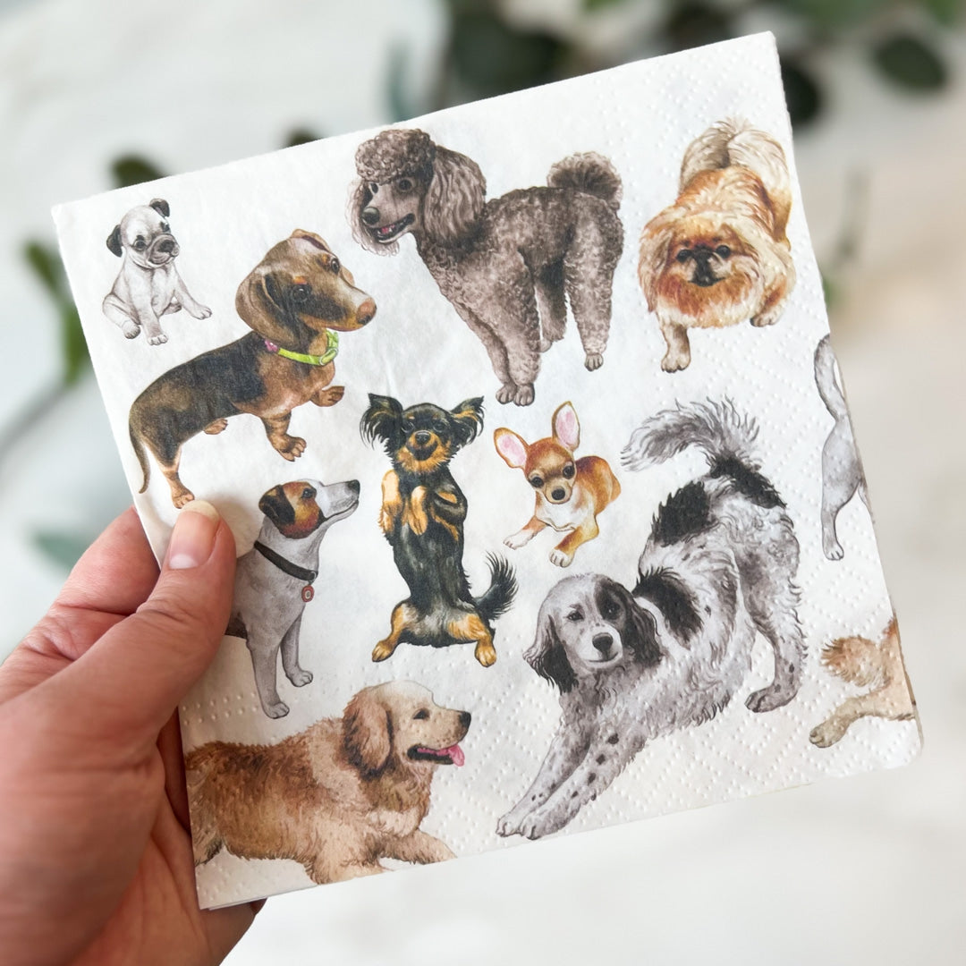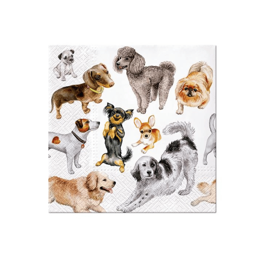 Söta servetter med hundmotiv. Perfekt present till alla hundälskare. Servetterna är 3-lagers pappersservetter och kommer med 20 st i ett paket.