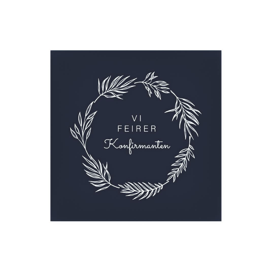 Snygga, mörkblå servetter med texten "Vi firar konfirmationen". Servetterna är gjorda av 3-lagers papper och kommer i en förpackning med 20 servetter. Perfekt för konfirmation för både killar och tjejer.