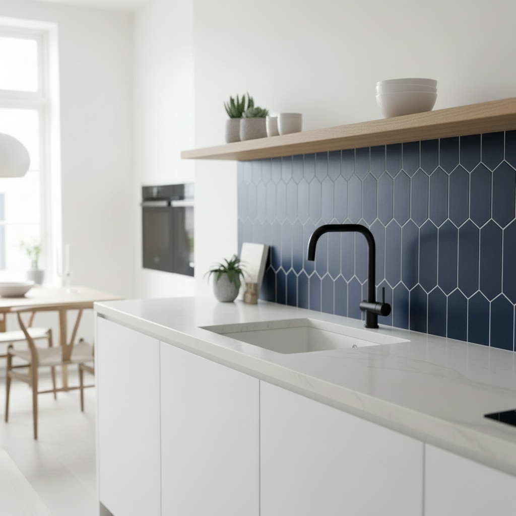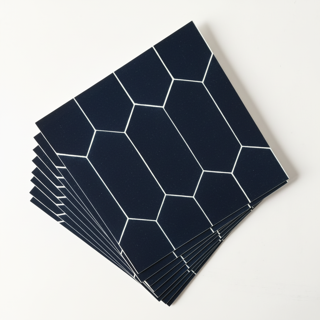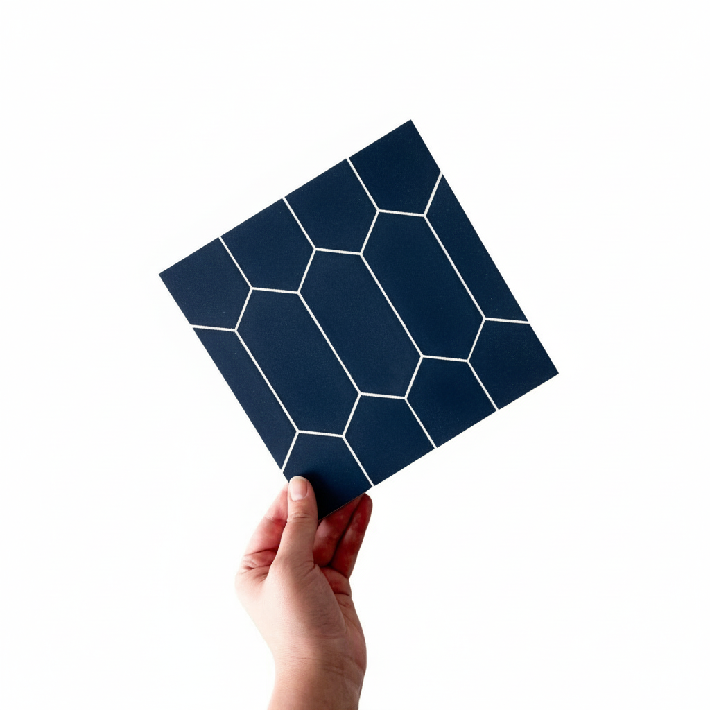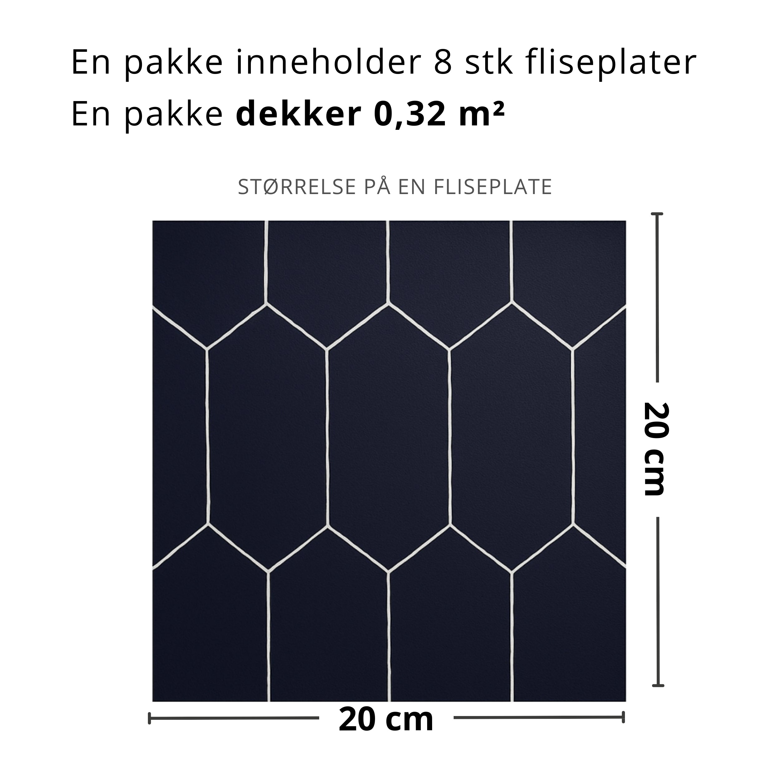 Gi kjøkkenet eller badet et nytt og moderne preg på minutter med Mathilde selvklebende fliser. Disse kvadratiske 20 x 20 cm flisene har et elegant, mørkeblått uttrykk som gir rommet karakter og stil.