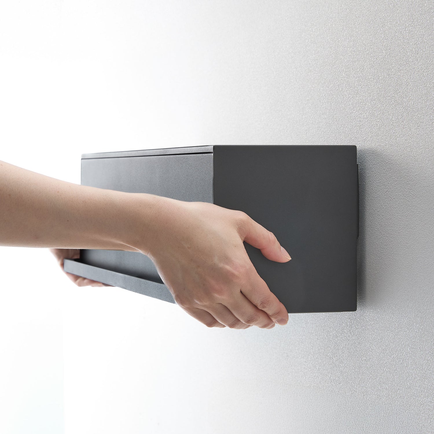 Smart oppbevaringsboks til vegg med en praktisk klaff som holder innholdet skjult. Perfekt størrelse til å gjemme ekstra doruller eller på kjøkkenet til krydder.