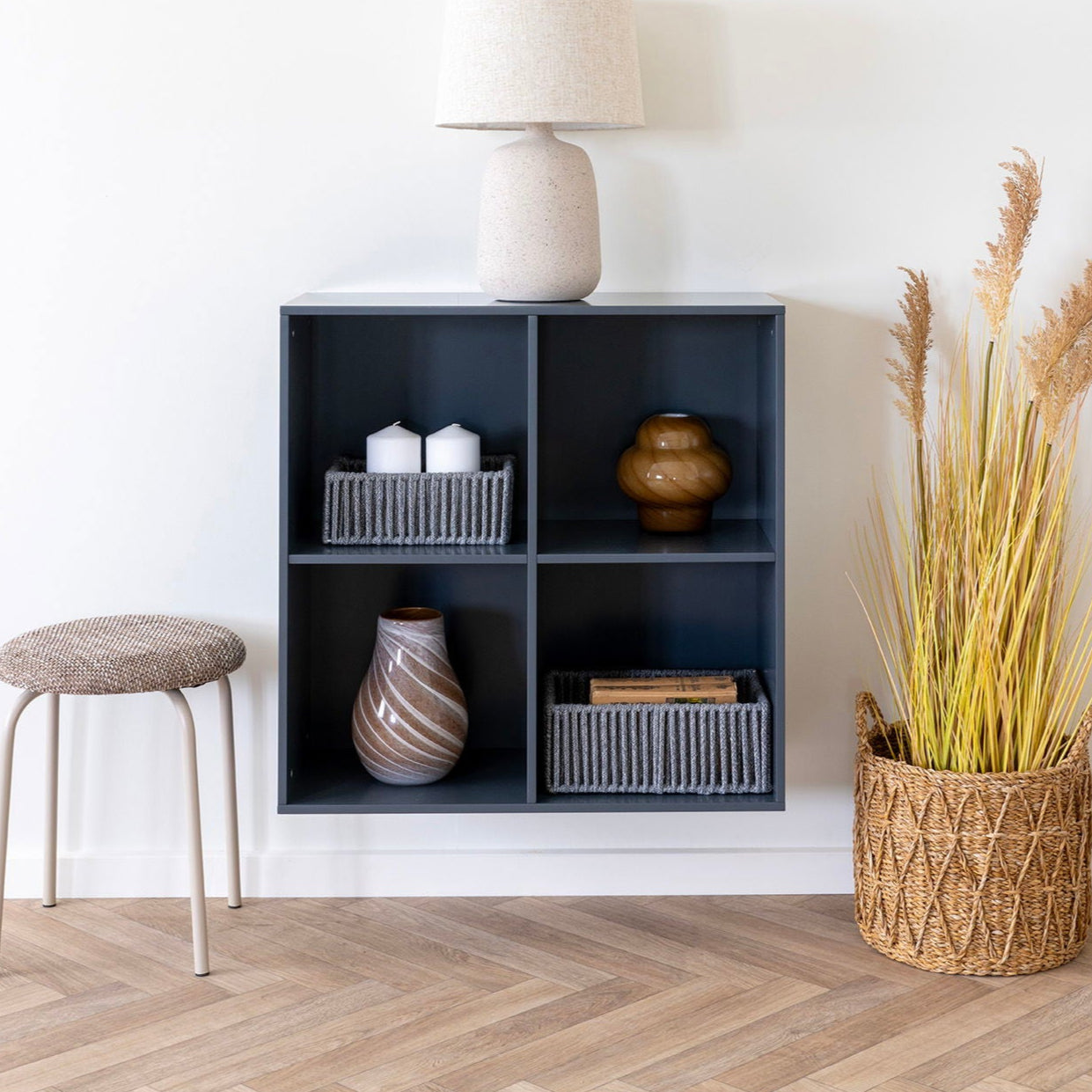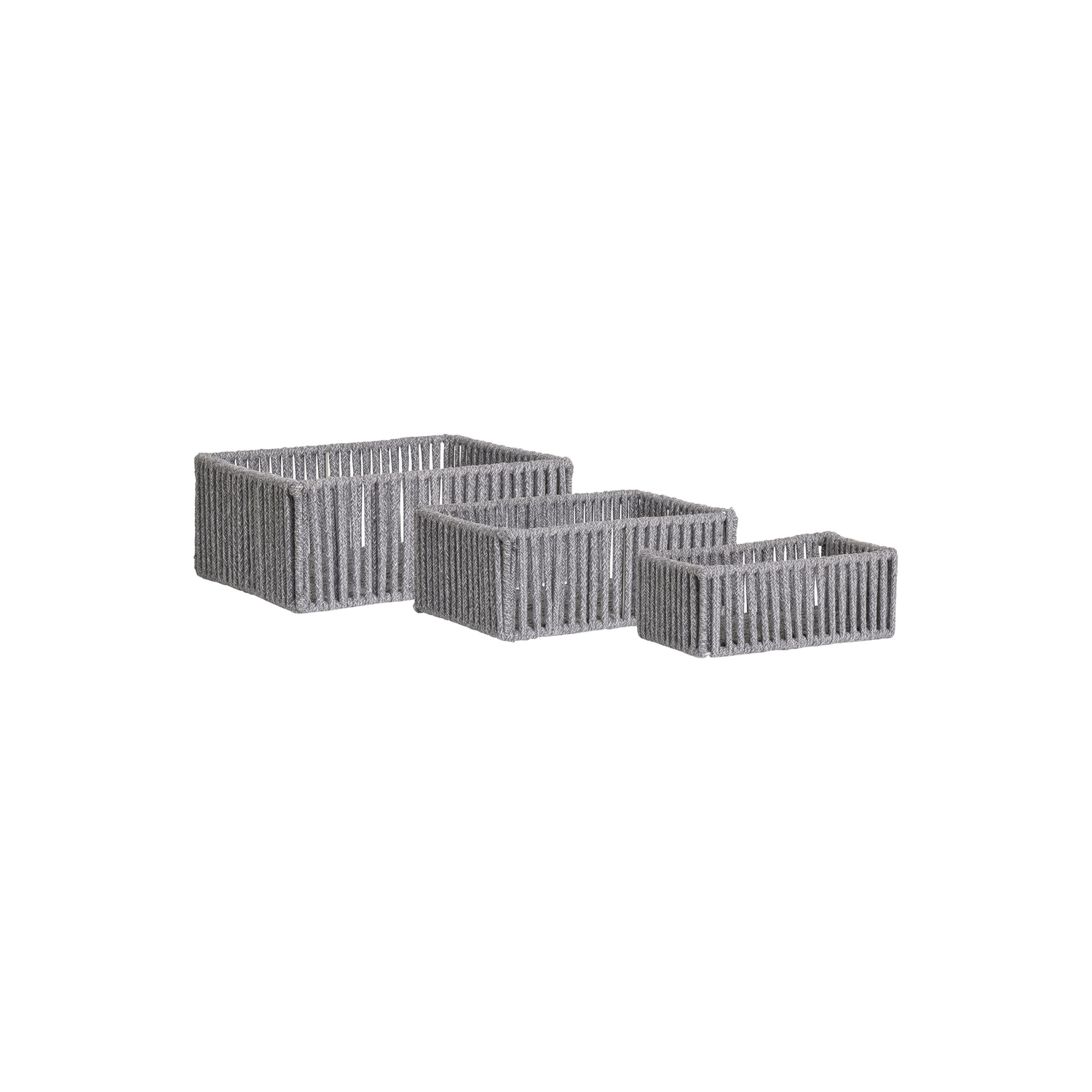 Arese kurvsett består av tre praktiske oppbevaringskurver laget i bomullstau med metallramme. Kurvene er stabile, lette og enkle å flytte, og passer godt til oppbevaring av småting i hyller, skap eller på badet.