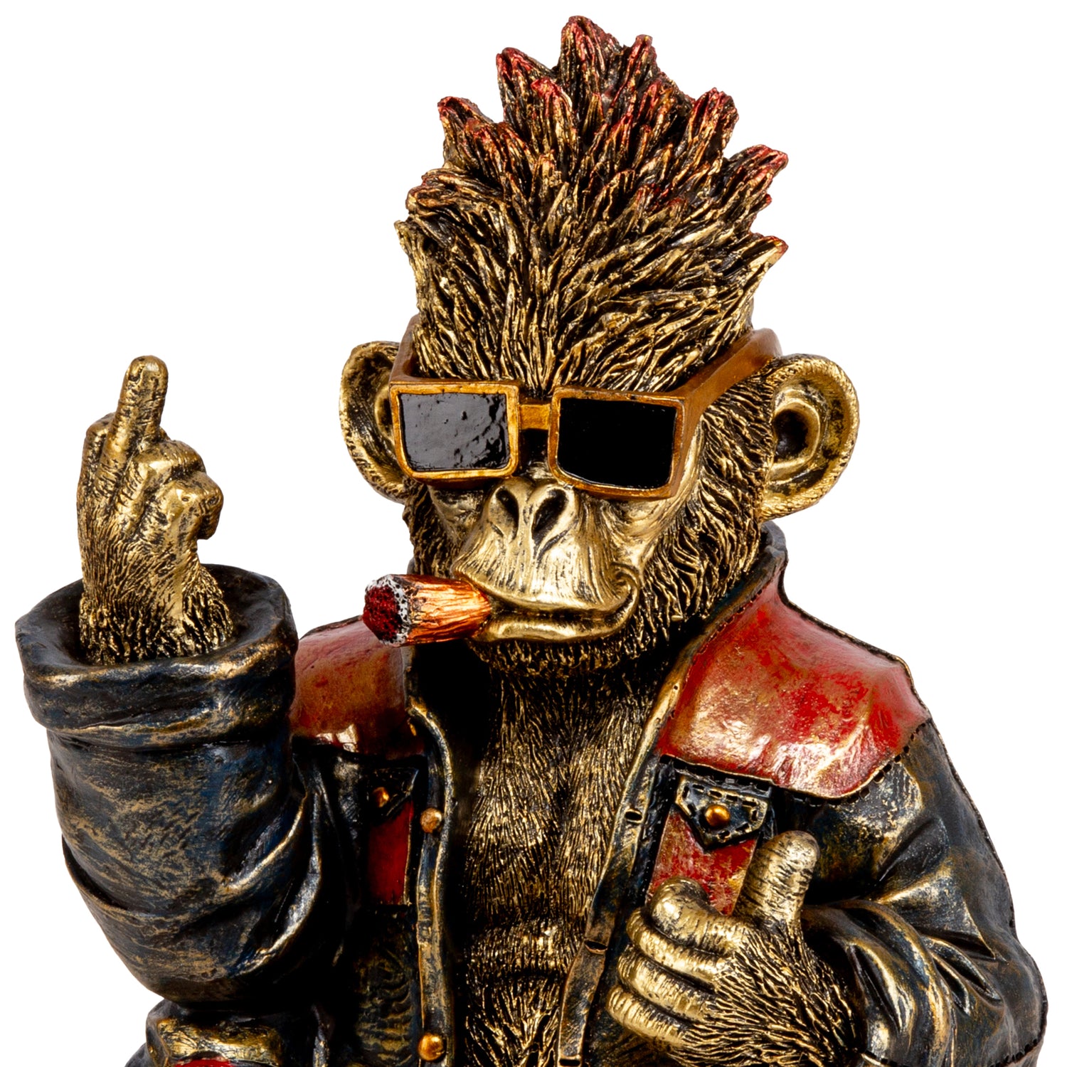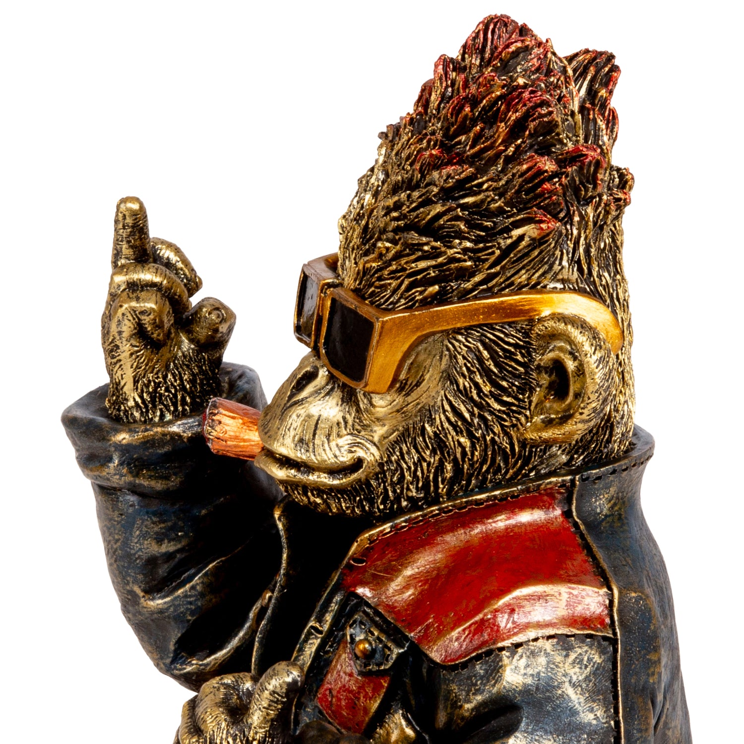 Gi interiøret et lekent og edgy preg med denne unike apefiguren i rockestil. Figuren viser en selvsikker ape med solbriller, skinnjakke og sigar, perfekt for deg som liker kunst med personlighet og humor.