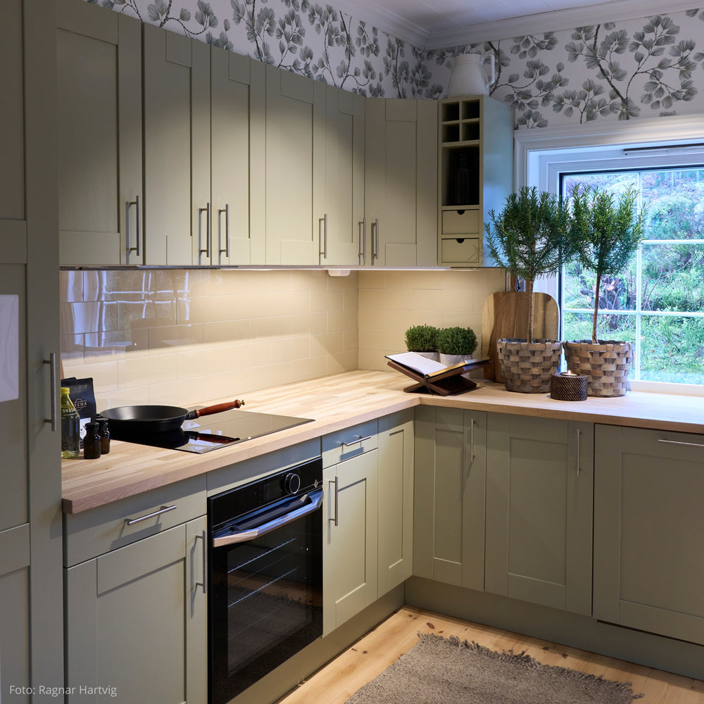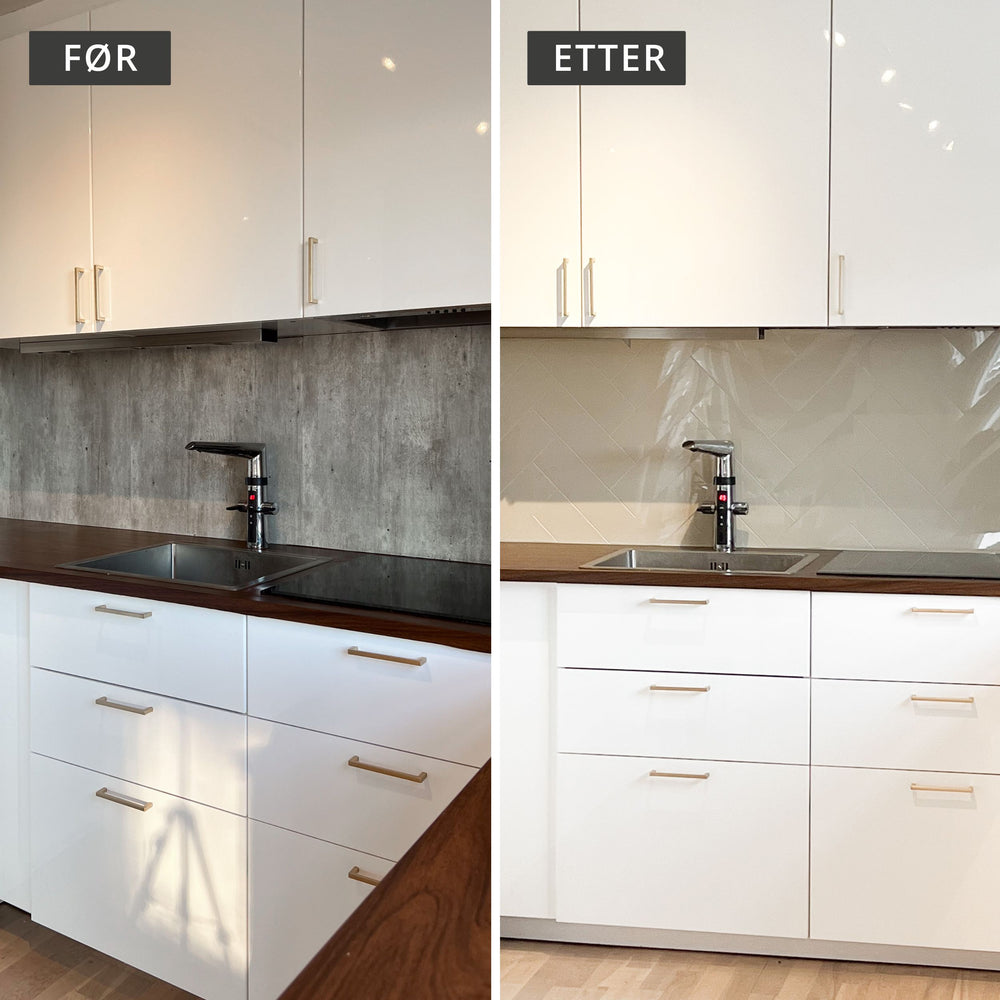 Gi kjøkkenet eller badet et moderne uttrykk med Hailey beige selvklebende fliser. De stilrene flisene har en varm beige tone med skrå kant og blank finish, som gir rommet en lun og sofistikert atmosfære. Beige er en av de store interiørtrendene, og passer perfekt sammen med både jordtoner og skandinaviske farger.