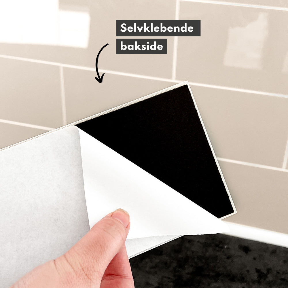 Flisene monteres enkelt – du trenger verken lim, fug eller verktøy. Det gjør dem til et raskt og rimelig alternativ for deg som ønsker en oppgradering uten håndverker. Overflaten er slitesterk, vannavvisende og lett å rengjøre, noe som gjør dem ideelle bak kjøkkenbenken, på badet eller i gangen.