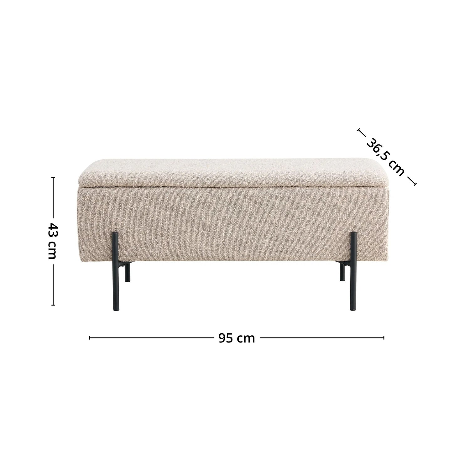 Skap praktisk orden og lun stemning med denne elegante oppbevaringsbenken fra House Nordic. Med et mykt bouclé-trekk i varm, jordnær tone og robuste sorte ben, kombinerer benken funksjonalitet med et moderne uttrykk.