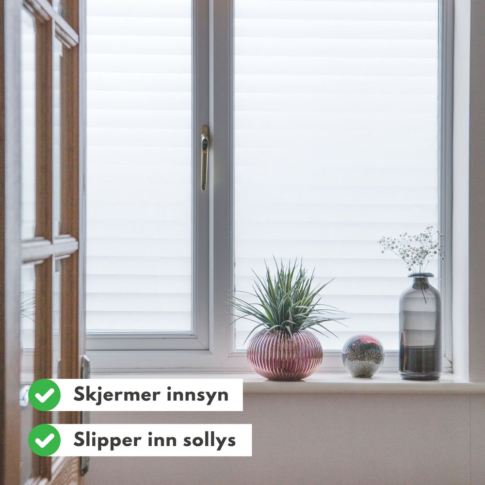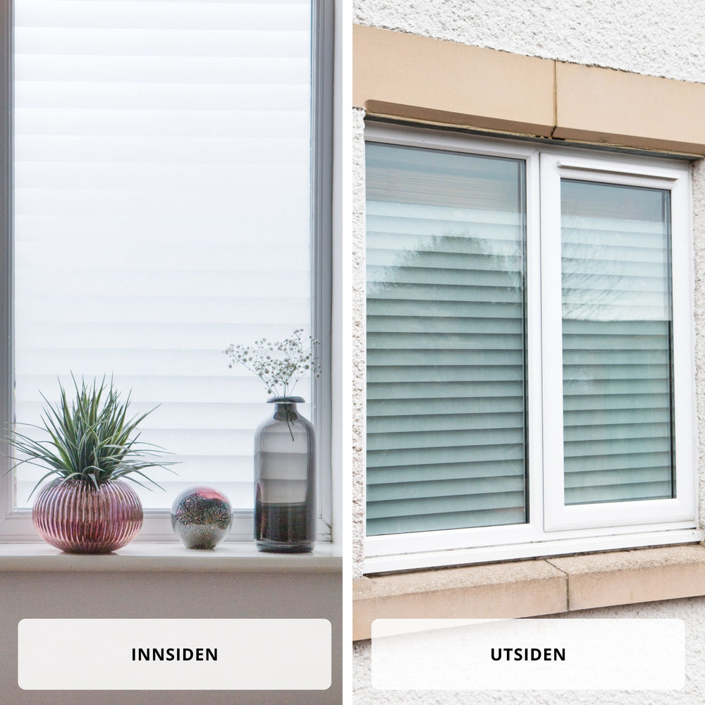 Jalousie fönsterfilm er en selvklebende vindusfolie som er ment for innendørs bruk. Vi anbefaler å velge statisk vindusfolie til utendørs bruk.