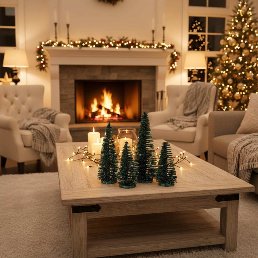 Pynt opp julebordet, vinduskarmen eller skjenken med dekorative juletre i ulike høyder. Hver pakke inneholder 4 stk juletre.