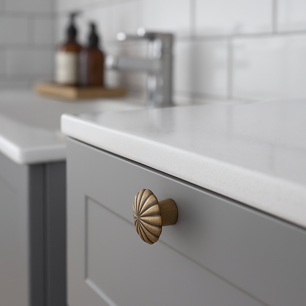 Vacker knopp i mässing med klassisk och elegant design. Denna vackra knopp kommer i en antik bronsfärg och är perfekt för lådor och skåp. Skruvar ingår.