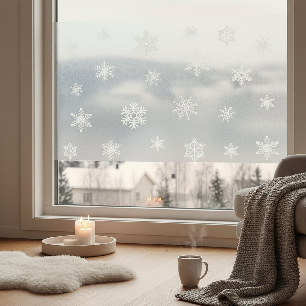 Kommer du ihåg när vi brukade dekorera fönstren med julklistermärken? Nu förs denna tillbaka in i hemmet med ny fönsterfilm! Denna fönsterfilm ger hemmet lite extra vinter/julstämning, och utnyttjar även fördelen med ett frostat fönster. Inred för vintern i hemmet, i badrummet, vid ytterdörren, i sovrummet, glasdörren eller på vitrinskåpet. Folien är klisterfri och därför återanvändbar. Det betyder att du kan använda folien år efter år.