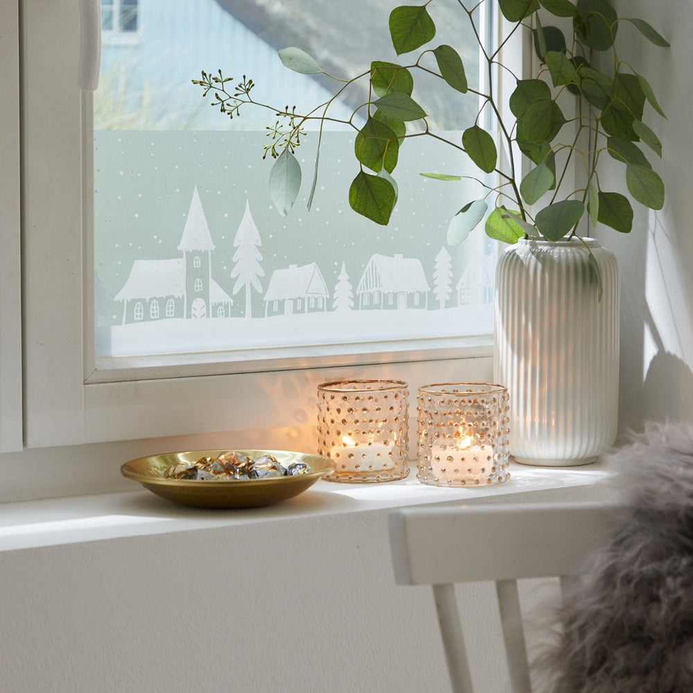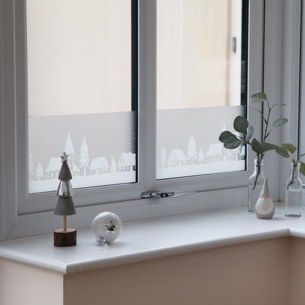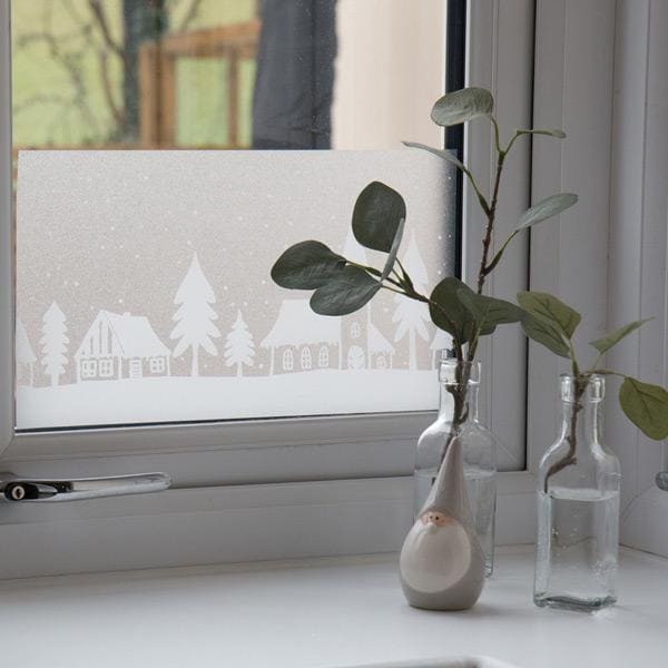 Kommer du ihåg när vi brukade dekorera fönstren med julklistermärken? Nu förs denna tillbaka in i hemmet med ny fönsterfilm! Denna fönsterfilm ger hemmet lite extra vinter/julstämning, och utnyttjar även fördelen med ett frostat fönster. Inred för vintern i hemmet, i badrummet, vid ytterdörren, i sovrummet, glasdörren eller på vitrinskåpet. Folien är klisterfri och därför återanvändbar. Det betyder att du kan använda folien år efter år.