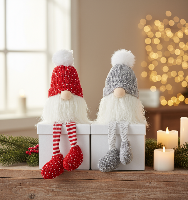 Enkel och modern sittande tygtomte. Dekorera ditt hem med denna tomte. Ser bra ut på soffan, skänken, hyllan eller var du nu kan tänka dig att ställa den. Finns i två olika färger.