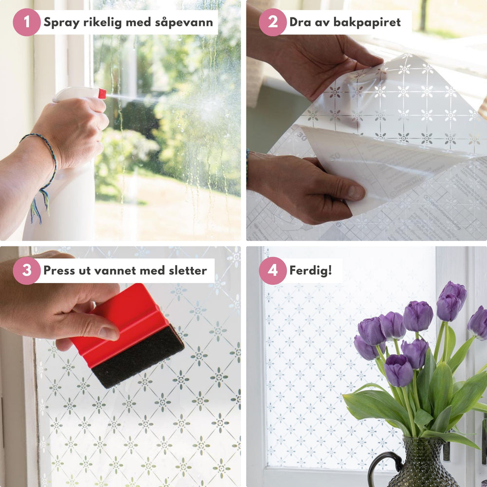 Folien er i tillegg gjenbrukbar og etterlater ingen merker på vinduet når du drar den av.