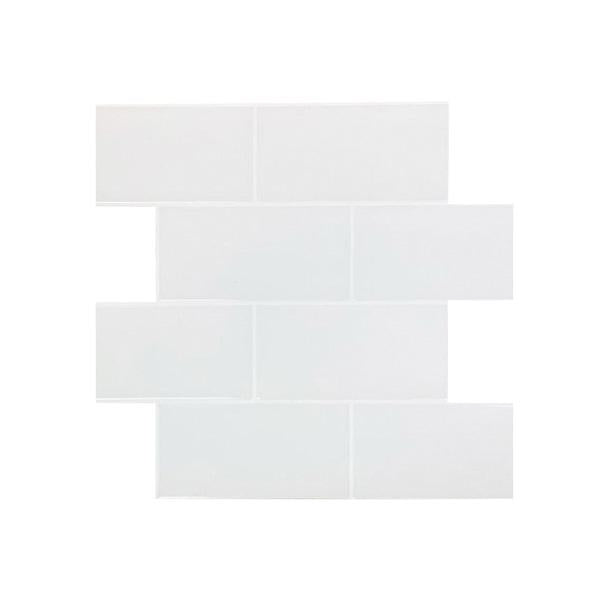 Dessa vackra självhäftande plattor efterliknar moderna Subway-plattor i vitt med vita fogar. Kakelplattorna är perfekta för att lyfta kök, tvättstugor och badrum till nya höjder!