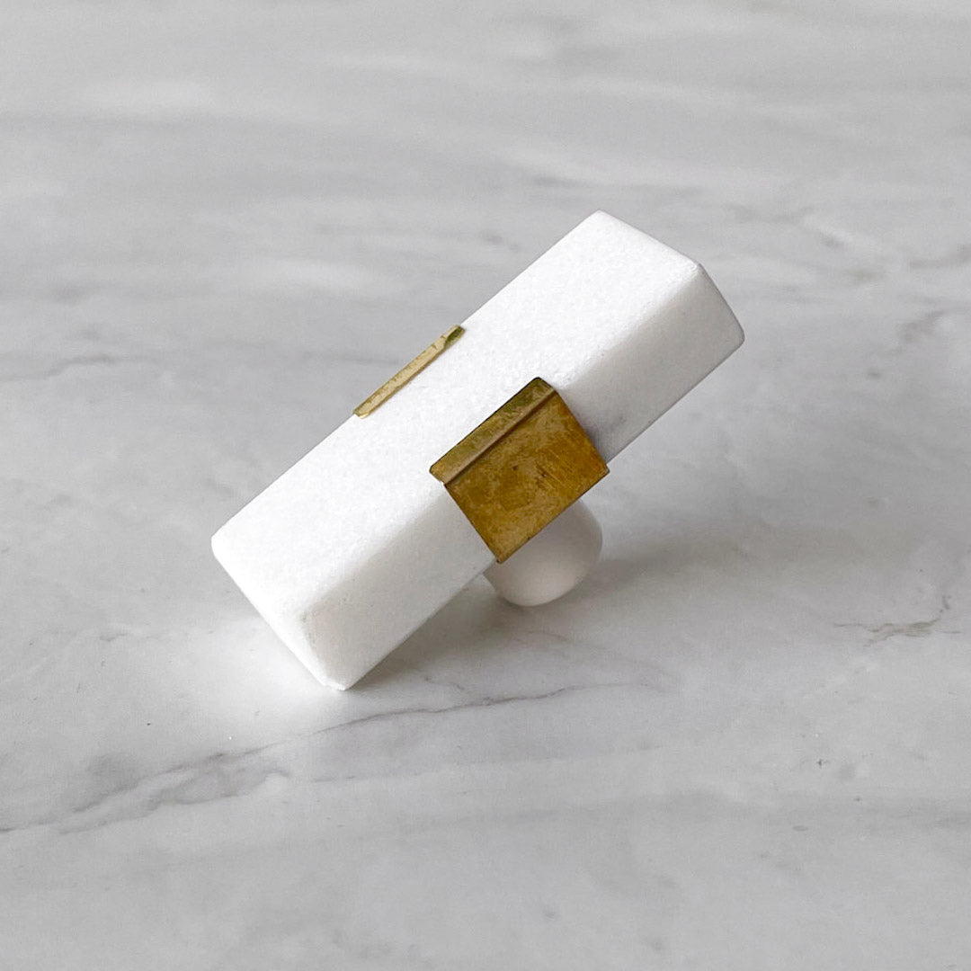 Elegant knopp i äkta, vit marmor och mässing med modern och tidlös design. Perfekt för lådor, skåp och andra möbler. Ge dina möbler ett exklusivt utseende med dessa snygga knoppar.
