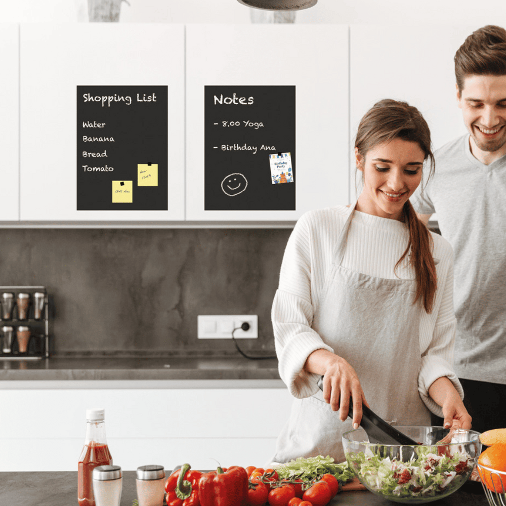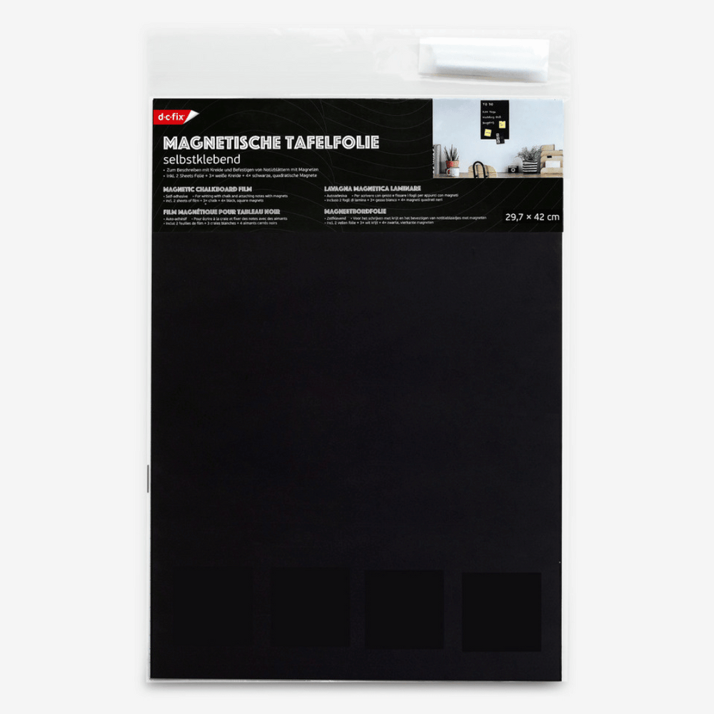 Magnetisk tavlafolie av högsta kvalitet. Folien kommer förlimmad på baksidan, så det enda du behöver göra är att ta bort skyddspapperet och fästa det där du vill. Sätt fast den på kylen, ovanför skrivbordet eller i köks-/badrumsskåpet. Perfekt för att göra-listor, inköpslistor eller som ritbord.