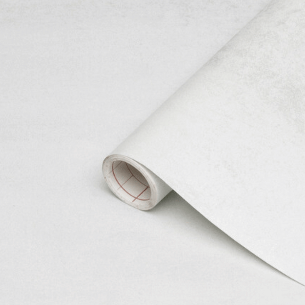 Dekorativ, självhäftande folie i toppkvalitet. Kontaktplasten kommer färdig med lim på baksidan, så allt du behöver göra är att ta bort skyddspappret och fästa det där du vill. Folien imiterar mikrocement i vitt och är perfekt för att förnya bord, byråer, köksbänkar mm.
