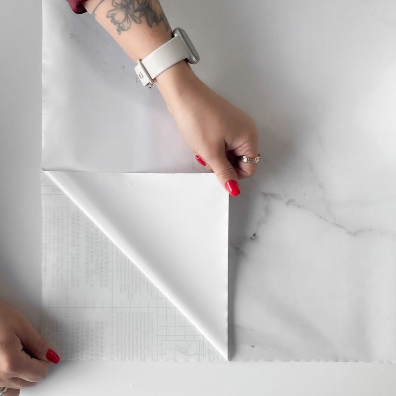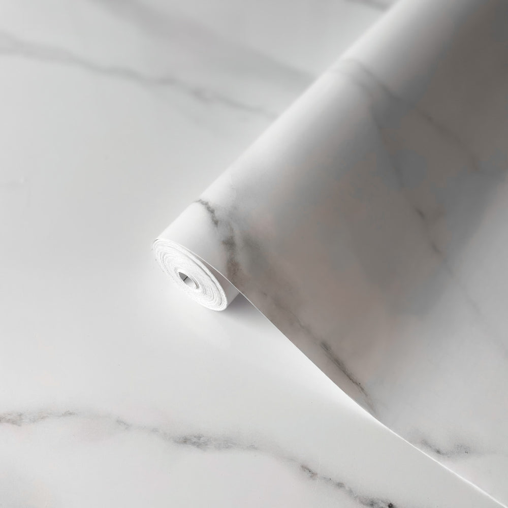Tjockare, unik kontaktplast med självhäftande baksida. Denna härliga folie imiterar vit marmor. Skär folien till önskad storlek, dra av bakpappret och stick var du vill. Eftersom denna folie är tjockare kan den vara mer utmanande att använda runt hörnen. Perfekt för att förnya kök, badrumsinredning, väggar, tv-bänkar och mycket mer.
