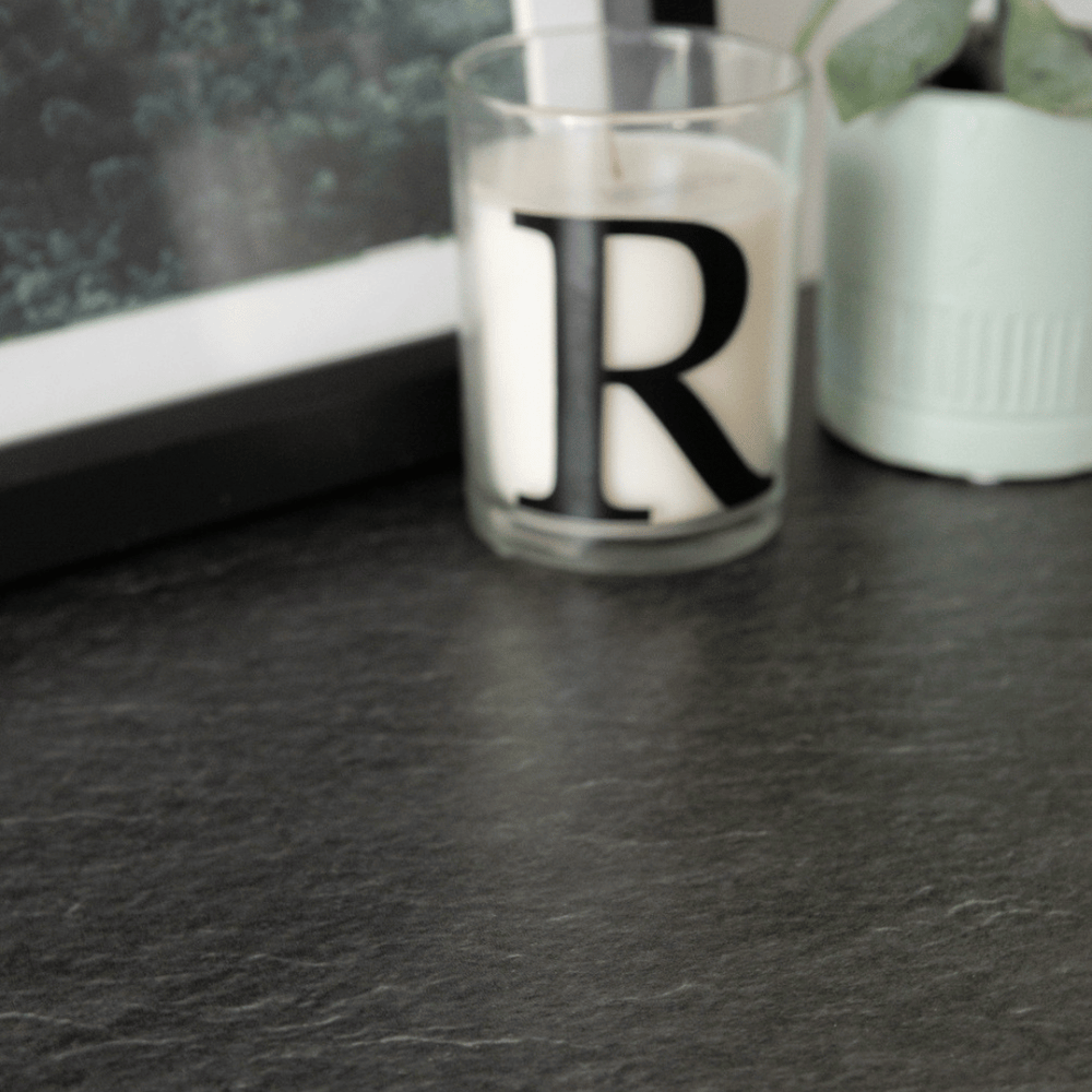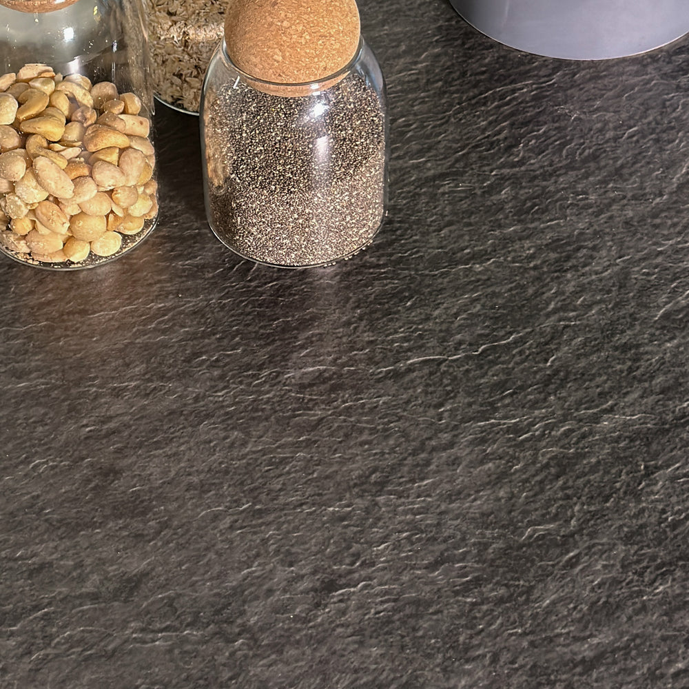 Slate matt är en modern folie som imiterar grå skiffer och är perfekt för att förnya väggar, köksbänkar, bordsskivor eller andra möbler.