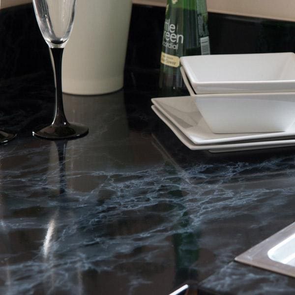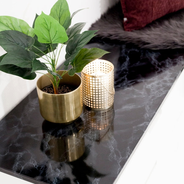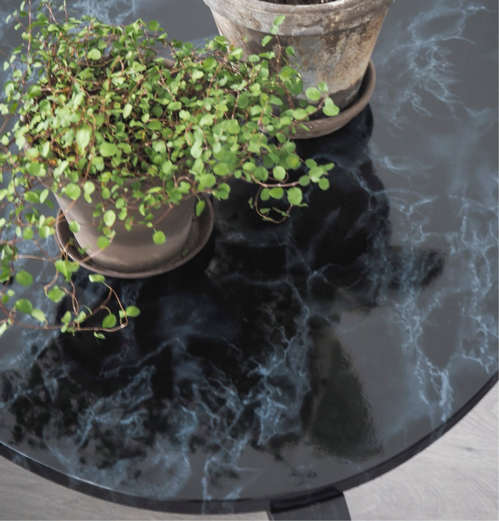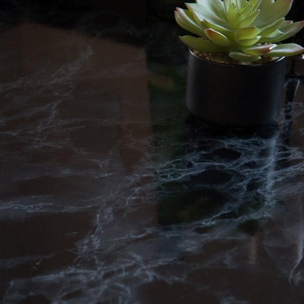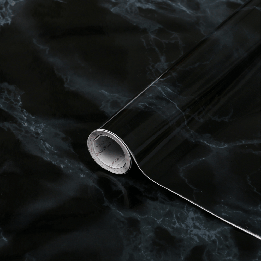 Dekorativ, självhäftande folie i toppkvalitet. Kontaktplasten kommer färdig med lim på baksidan, så allt du behöver göra är att ta bort skyddspappret och fästa det där du vill. Folien imiterar marmor i svart med blå toner. Den är perfekt för bord, byråer, köksbänkar, badrum mm