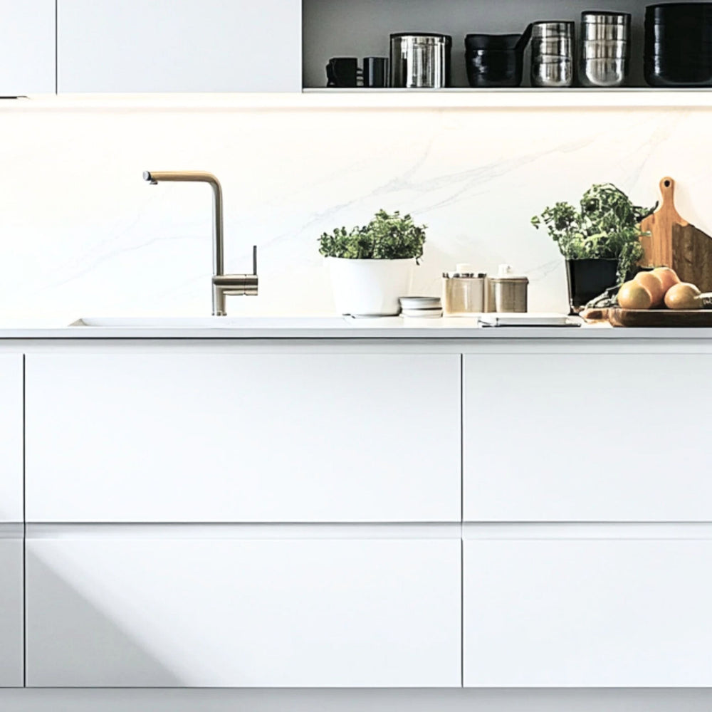 Kjøkkenskap, benkeplate, vegg, garderobeskap, baderomsservant, skrivebord m.m.