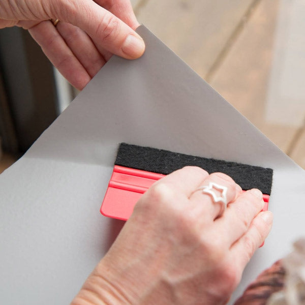 Folien kommer ferdig med lim på baksiden, så det eneste du trenger å gjøre er å fjerne bakpapiret og fest den der du ønsker.