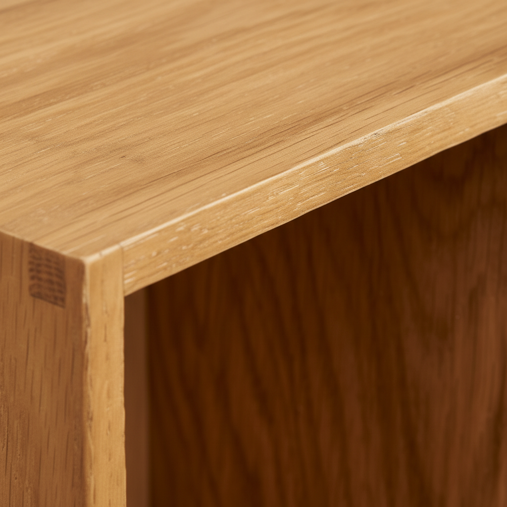 Soria vegghylle i eik og eikefiner natur gir et strukturert og dekorativt uttrykk på veggen. Den kompakte størrelsen på 39 x 51 cm kombinert med flere åpne rom gjør den ideell for både oppbevaring og styling.