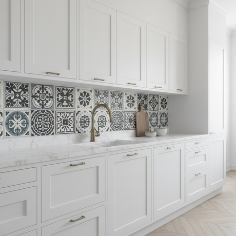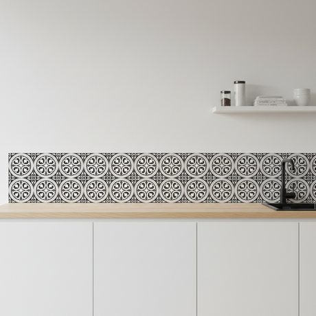 Ord. pris 1,379.00 krper stkPå lager8-pk Isadora selvklebende fliser sort hvit mønster 40 x 40 cm