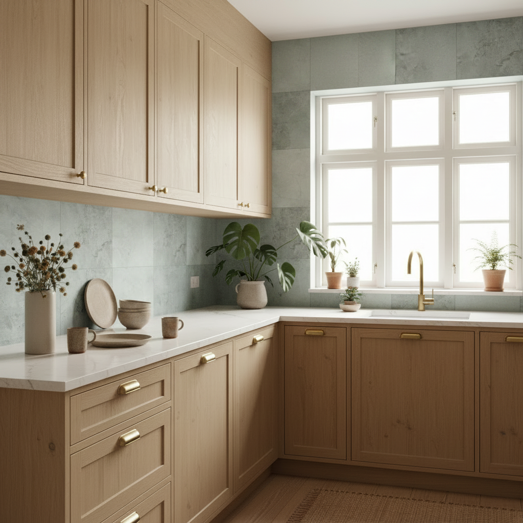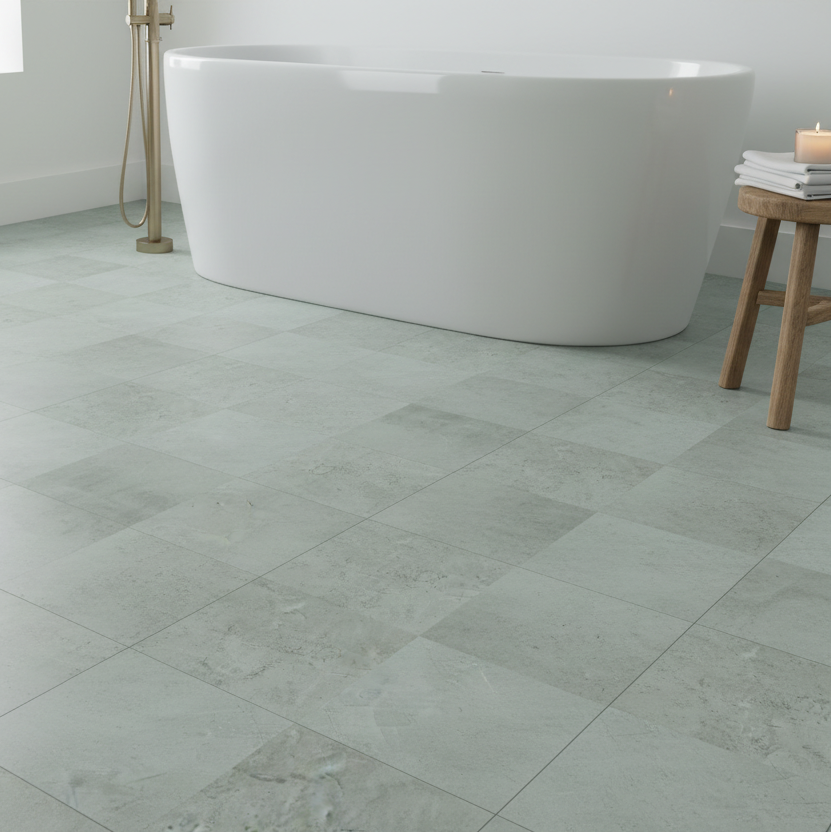 Flisene måler 40 x 40 cm og egner seg godt på både gulv og vegg. De passer spesielt fint på bad, i dusjsoner, på vaskerom eller som backsplash på kjøkkenet der du ønsker et rolig uttrykk med mer personlighet. Den myke turkise tonen gjør det enkelt å skape en gjennomført flate som føles lysere, friskere og mer dekorativ.