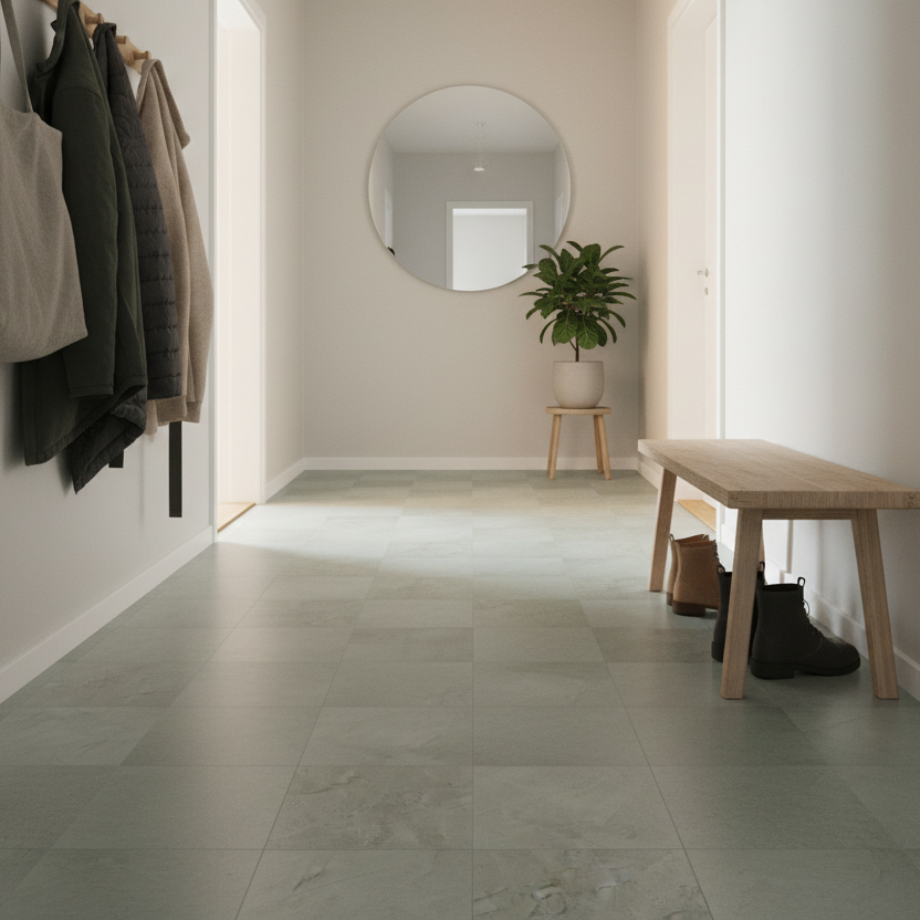 Skifer turkis selvklebende fliser har et uttrykk inspirert av naturlig skifer i en rolig turkis tone. Den dempede fargen gir overflaten et friskere og mer særpreget preg enn klassiske grå steinfliser, samtidig som den bevarer følelsen av naturlig struktur og dybde.