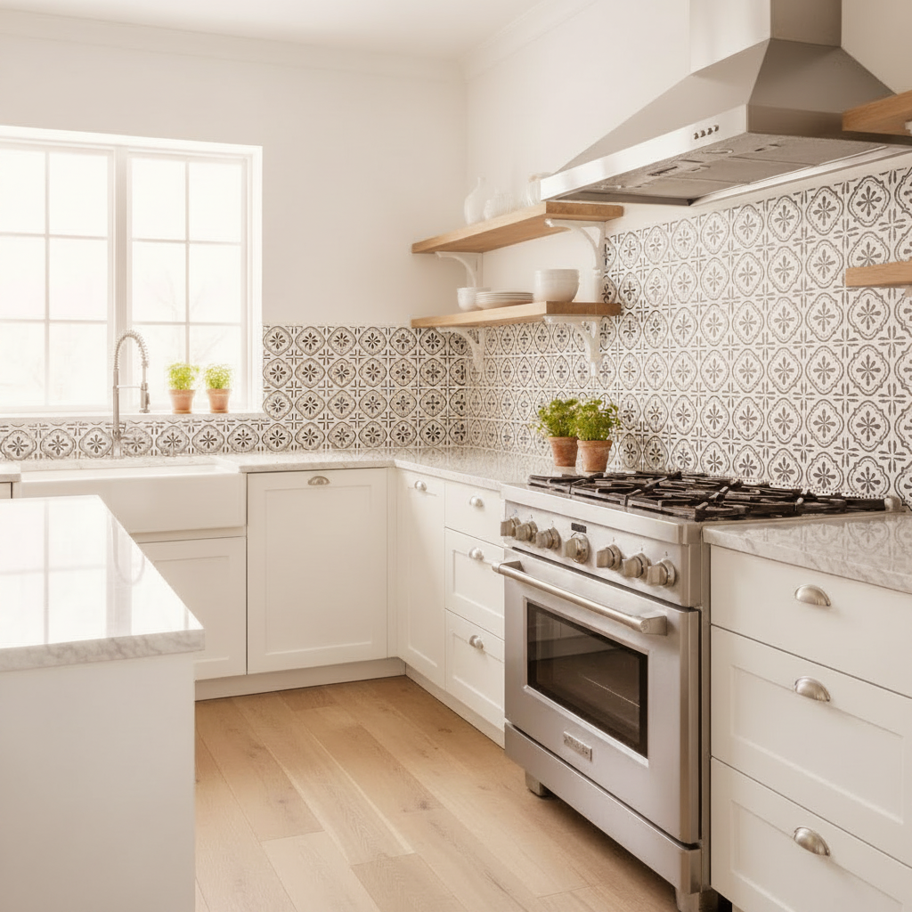 Ønsker du å fornye gulvet raskt og enkelt? Lea selvklebende fliser gir deg et dekorativt uttrykk i myke toner av blå og offwhite.