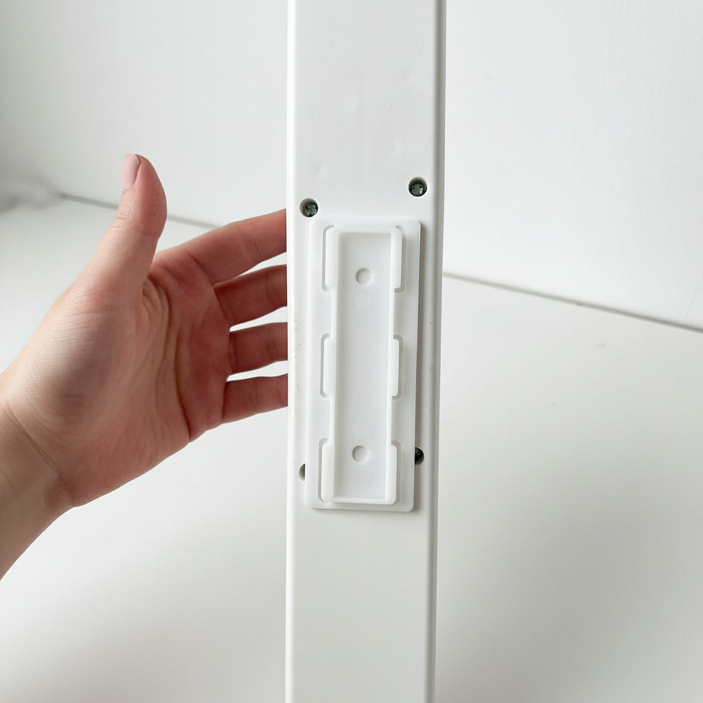 Den starka självhäftande baksidan fäster enkelt på ytor som väggar, skrivbord, bänkskivor och skåp. Med en enkel fäst- och lossningsmekanism kan du installera och ta bort grenuttaget utan att använda verktyg.
