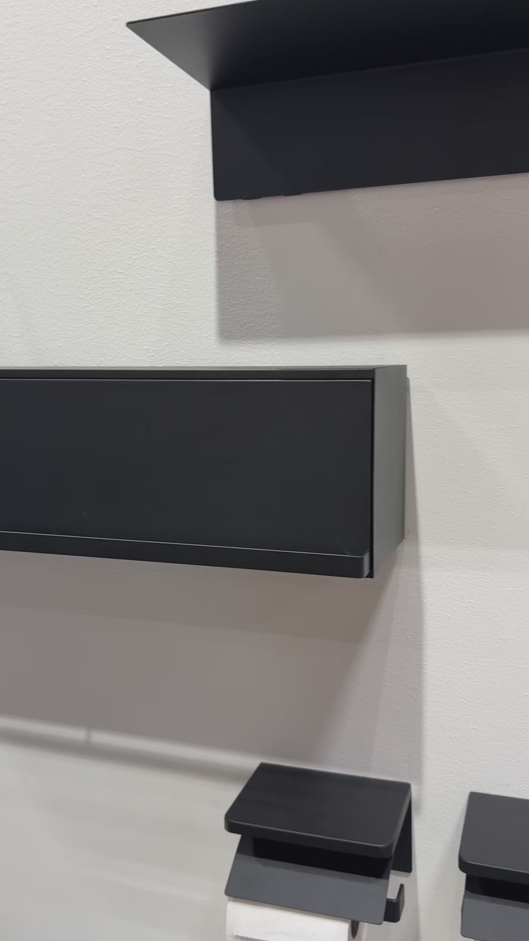 Smart oppbevaringsboks til vegg med en praktisk klaff som holder innholdet skjult. Perfekt størrelse til å gjemme ekstra doruller eller på kjøkkenet til krydder.