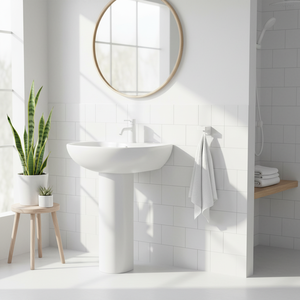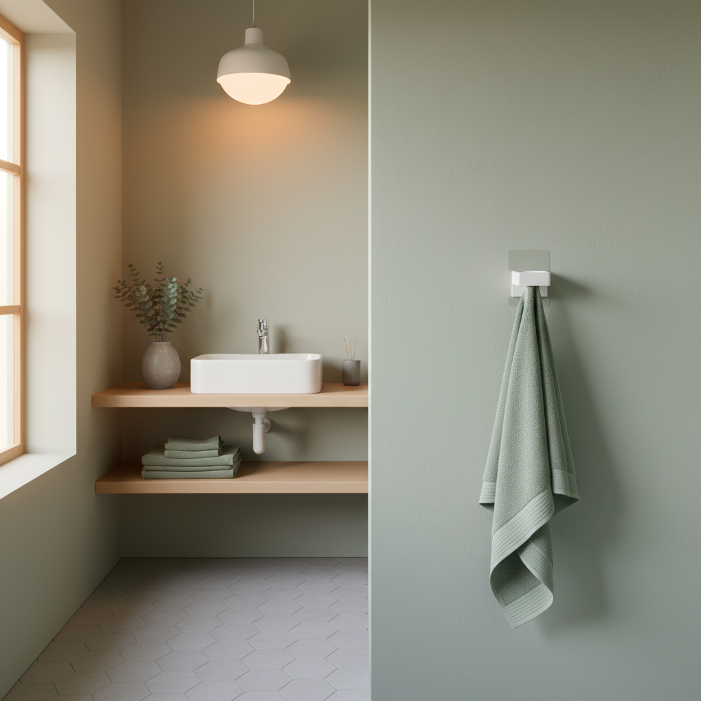 En praktisk hållare med självhäftande baksida som kan fästas på släta ytor som kakel, glas och metall. Väggfäste ingår.