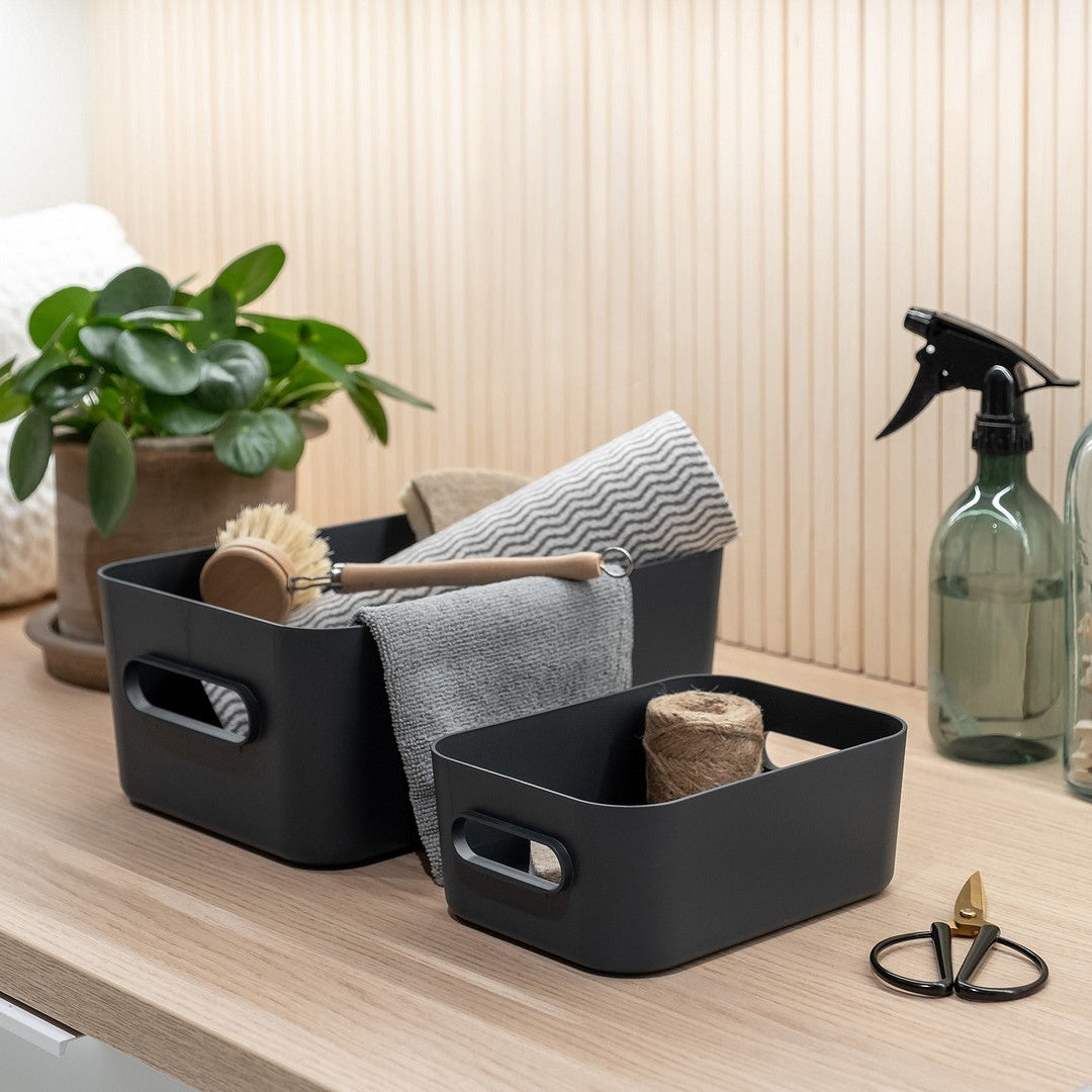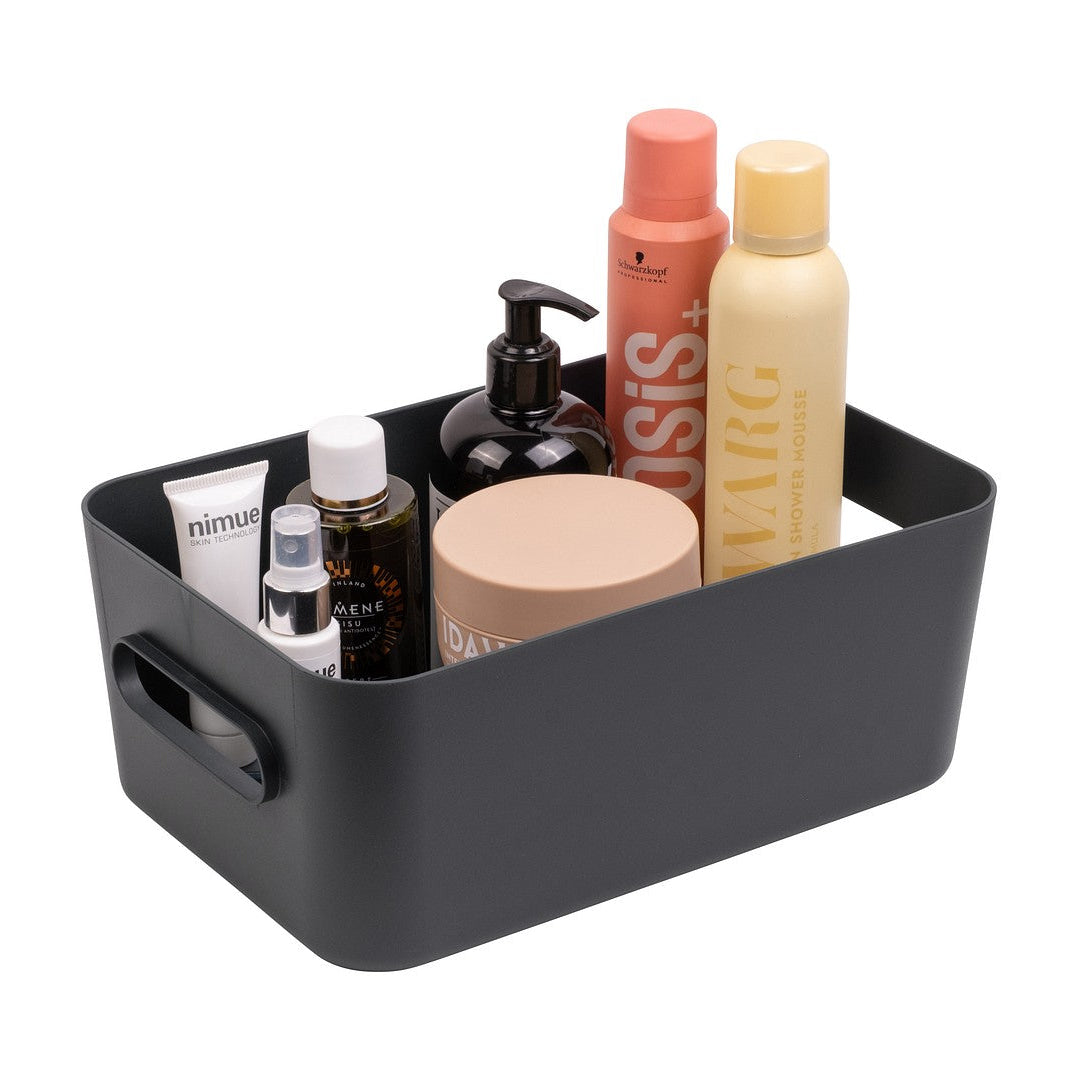 Med 5,3 liters kapasitet og integrerte håndtak får du en oppbevaringsboks som er enkel å løfte ut, flytte og sette tilbake. Den passer godt til toalettsaker, baderomsartikler, vaskeromsutstyr, småting i gangen, kontorrekvisita eller annet du vil organisere på en mer oversiktlig måte.