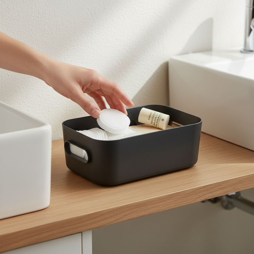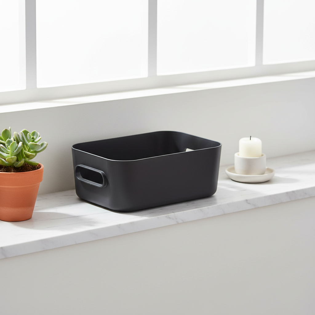 Med praktiske håndtak og 1,5 liters kapasitet får du en oppbevaringsboks som er lett å ta frem, flytte og sette tilbake i hverdagen. Den kompakte størrelsen gjør den velegnet til små toalettartikler, baderomsprodukter, vaskeromsutstyr, kontorrekvisita og andre ting som fort skaper rot hvis de ikke får en fast plass.