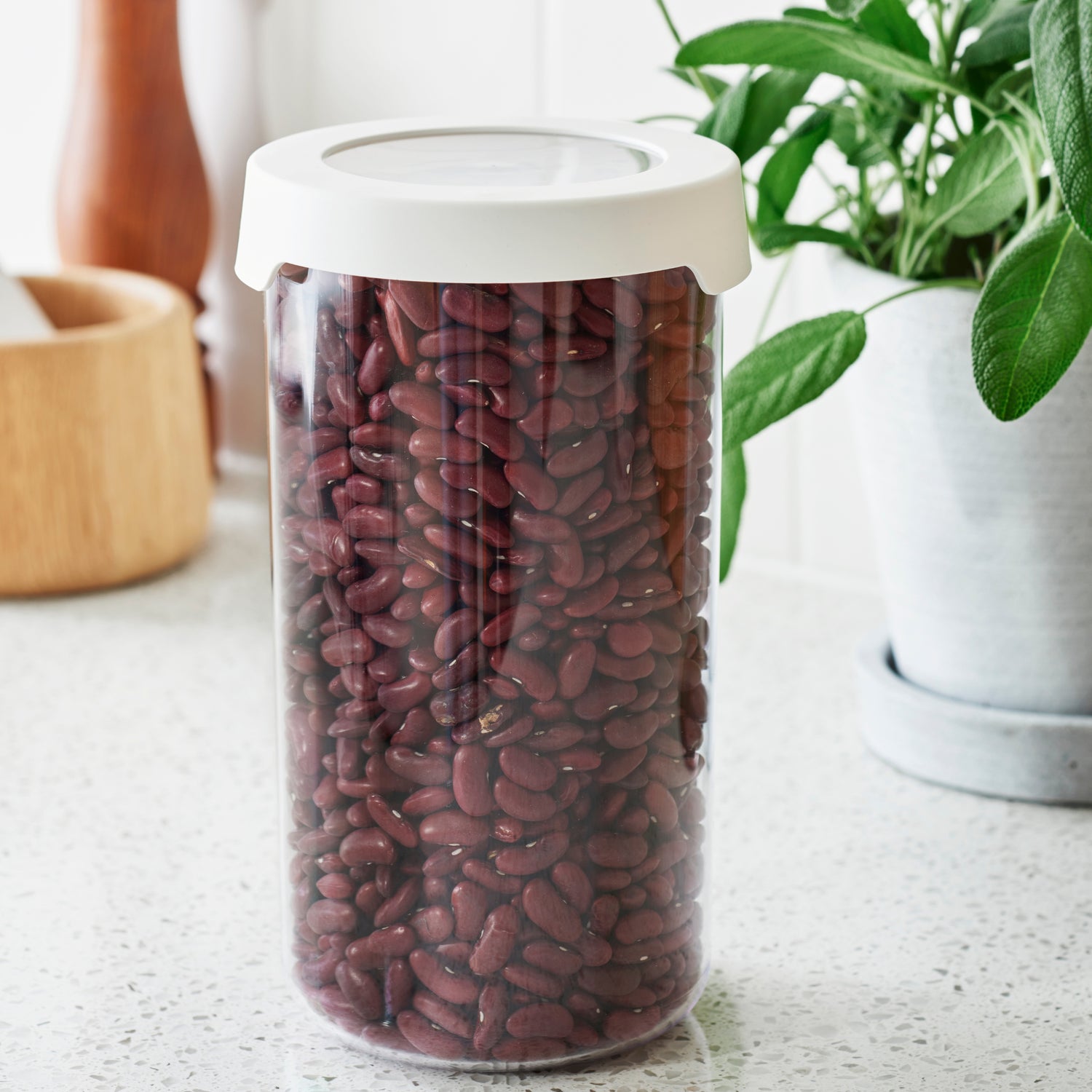 Transparent oppbevaringsboks på 0,75 liter med skrulokk som gjør det enkelt å se innholdet og holde tørrvarer samlet og beskyttet. Den kompakte størrelsen passer godt for deg som vil skape mer orden i kjøkkenskap, matbod eller skuff, samtidig som maten er lett tilgjengelig i hverdagen.