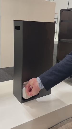 Med sitt slanke design passer det perfekt inn i små rom, samtidig som det holder ekstra doruller skjult, men lett tilgjengelige. Den smarte åpningen i bunnen gjør det enkelt å ta ut én rull av gangen.