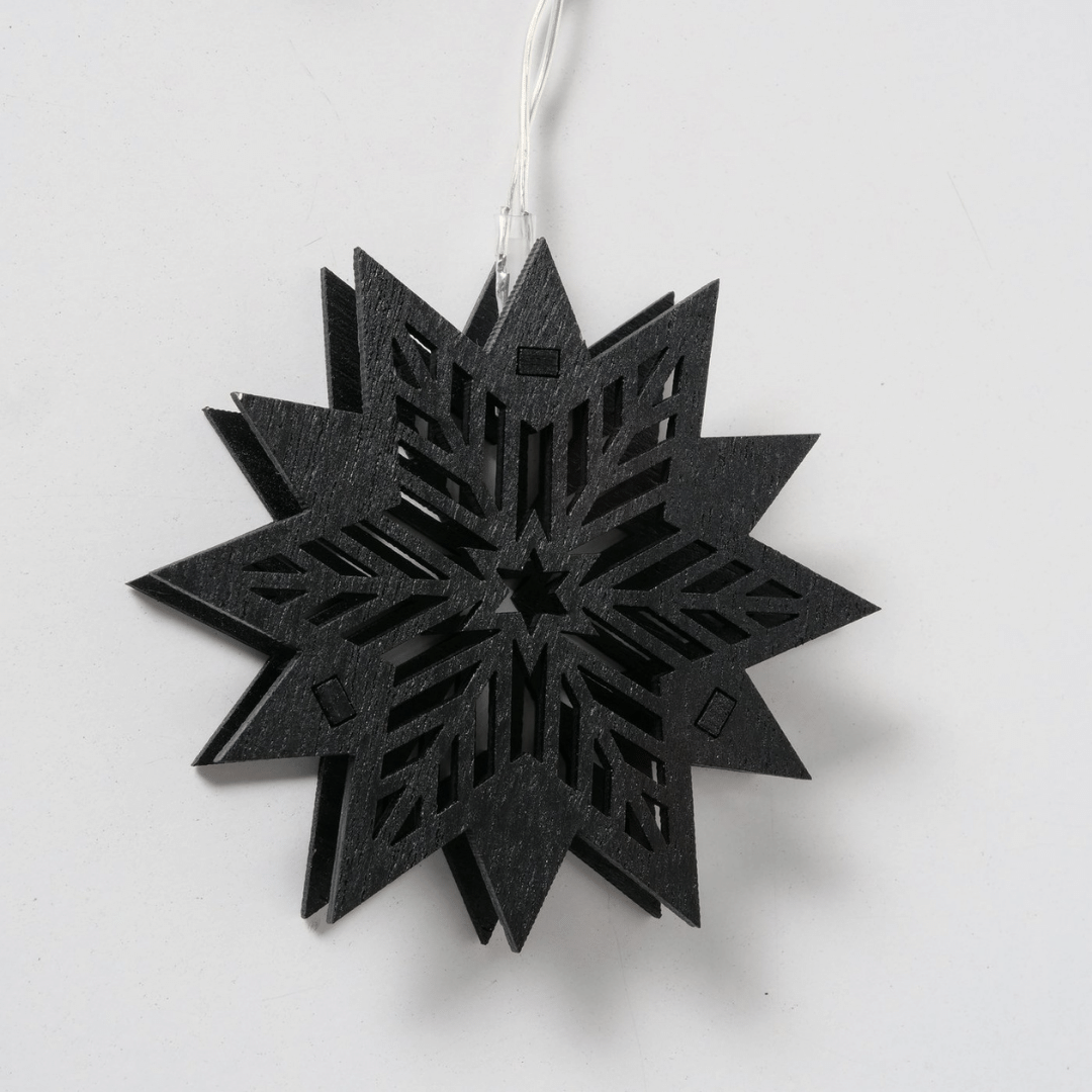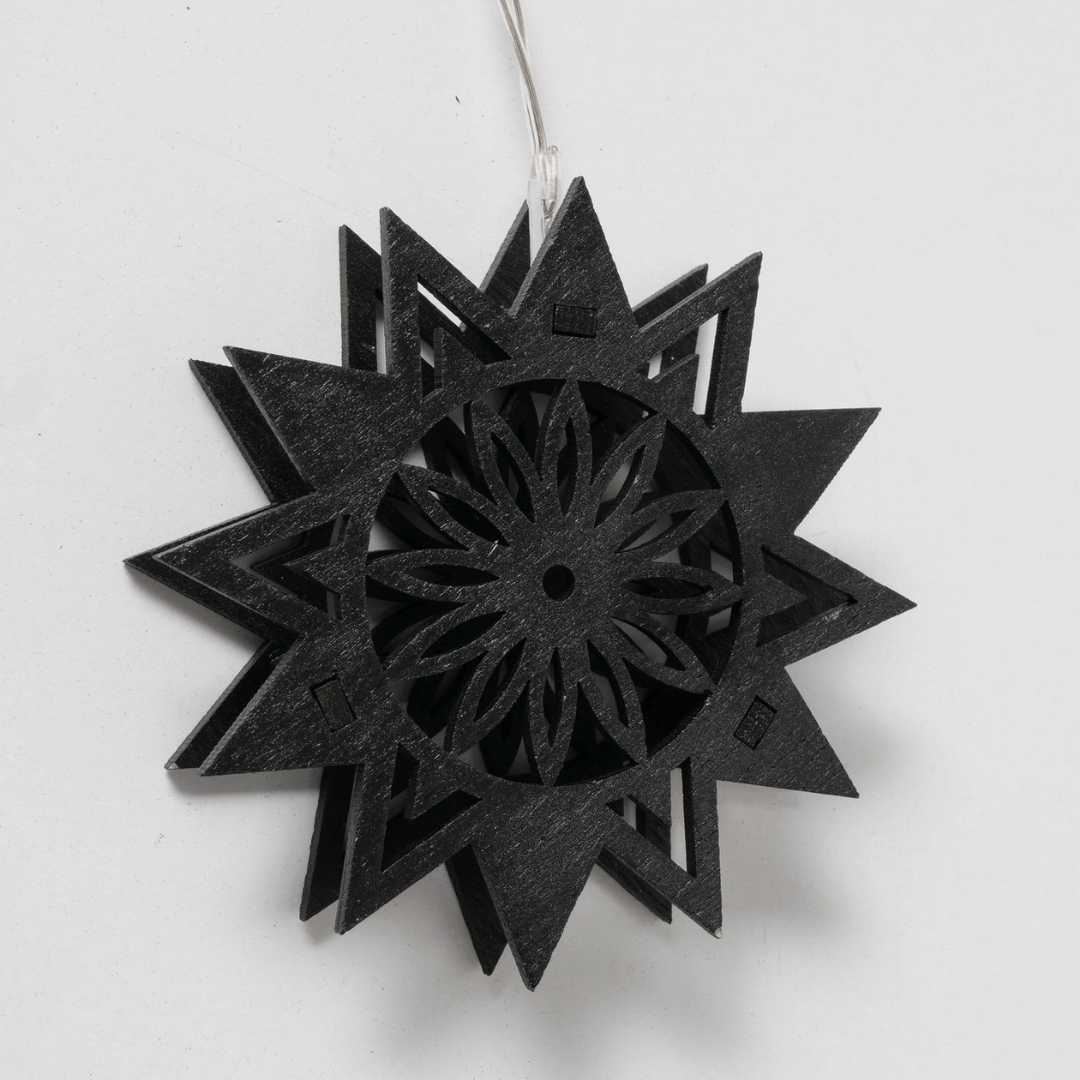 Skap en koselig og stemningsfull atmosfære med denne dekorative LED-lyslenken med stjernemotiv. Lyslenken er laget i tre med sort finish og gir et varmt og hyggelig lys når den er tent. Perfekt å henge i vinduskarmen, på en hylle eller som en del av julepynten i stuen.