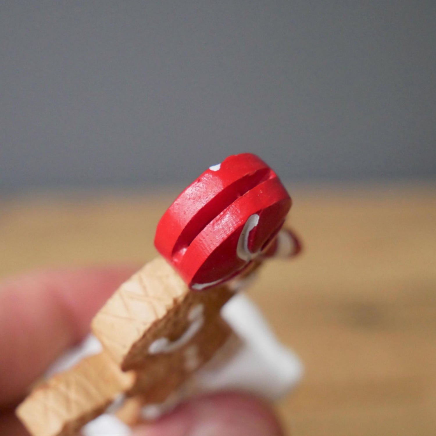 Hver pepperkakemann står stabilt på en base som ser ut som glasur, og de fargerike detaljene med rød, grønn og hvit gjør dem til et blikkfang.