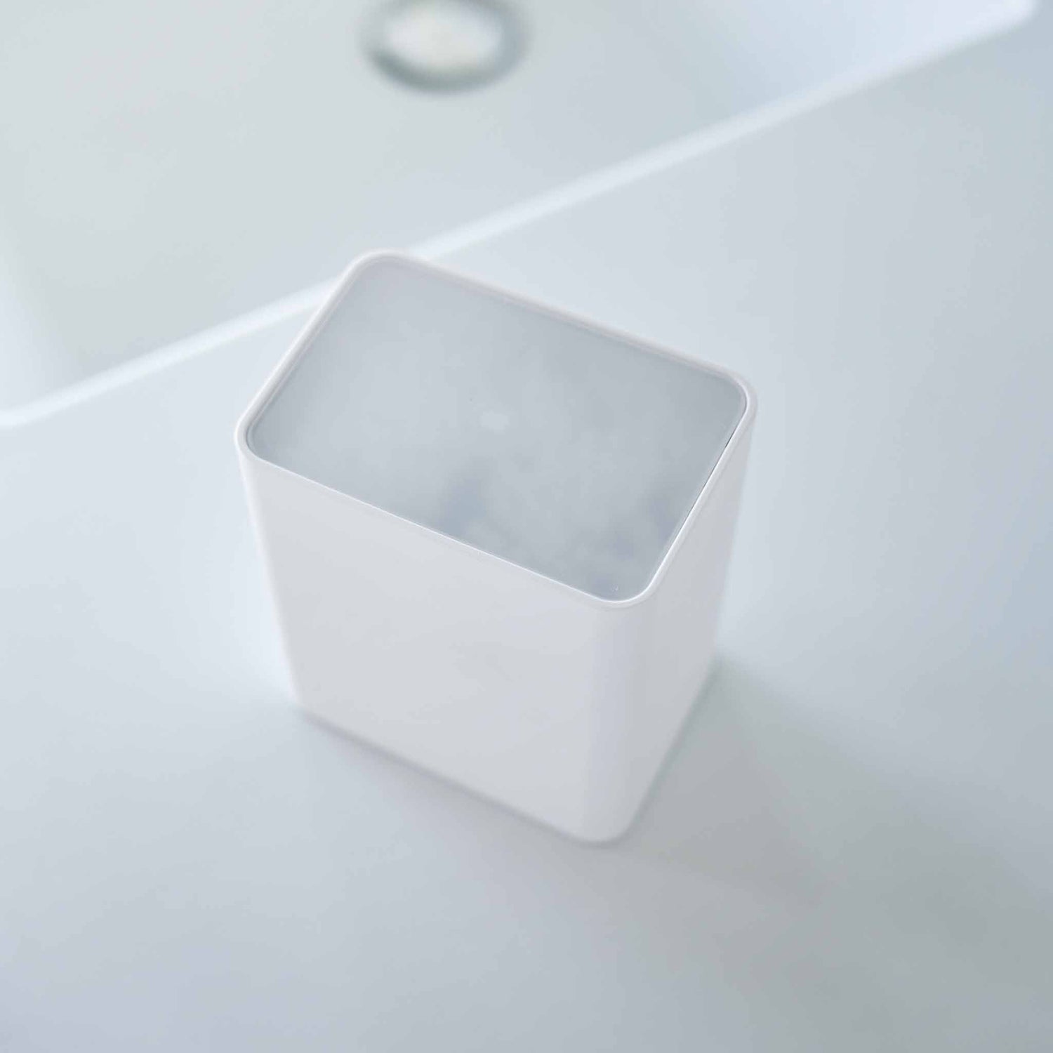 Den passer spesielt godt på badet, men fungerer også fint på sminkebord, i skuffeseksjon eller på kontoret til småting som ellers blir liggende løst. Det halvtransparente lokket bidrar til et renere uttrykk samtidig som innholdet holdes beskyttet.