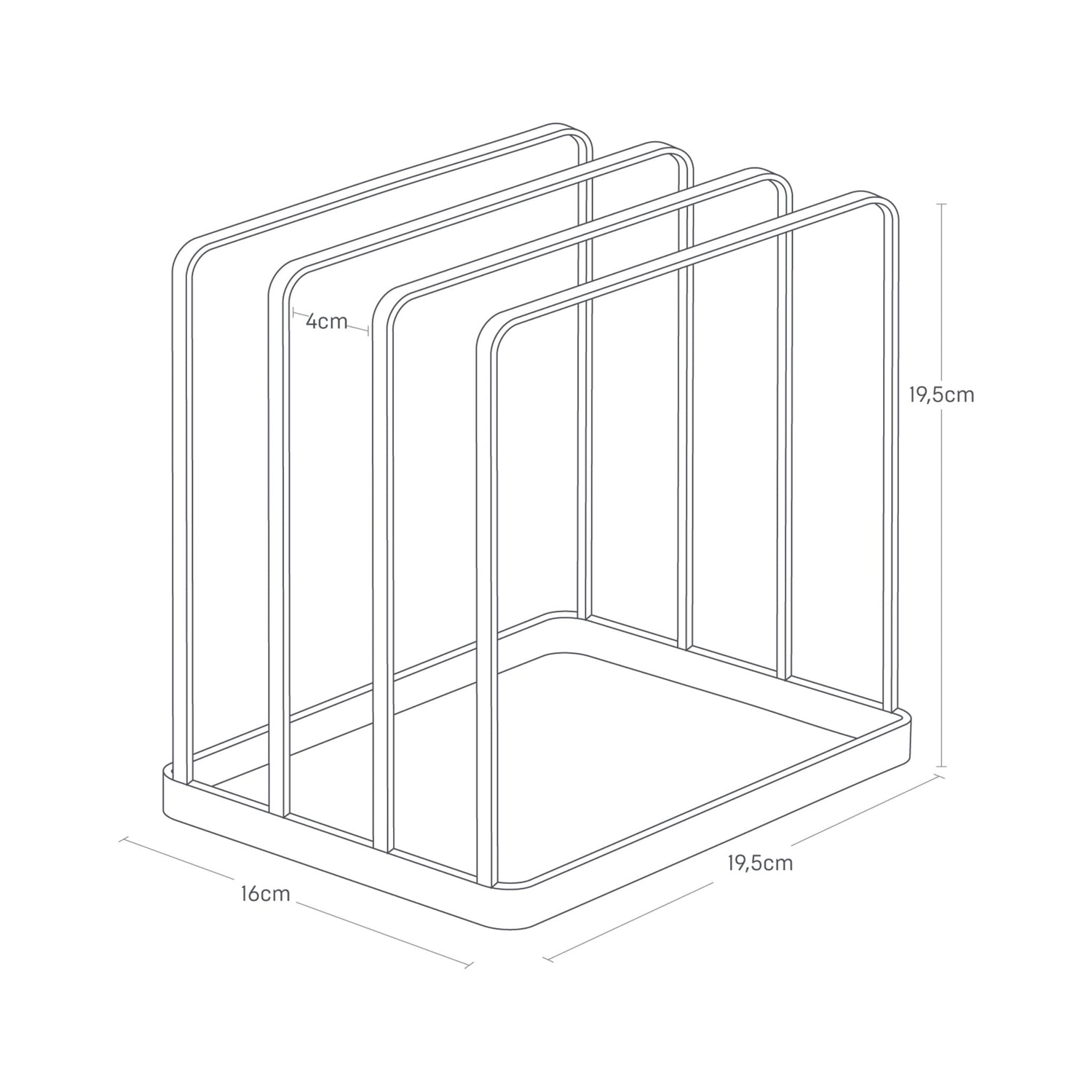 Med 3 separate rom for bedre organisering, slank utforming som tar lite plass og silikonføtter for bedre stabilitet, får du en løsning som gjør det lettere å holde større kjøkkenartikler ryddig samlet og lett tilgjengelig. Den åpne konstruksjonen gir rask oversikt, samtidig som stativet bidrar til at brett og skjærebrett står mer stabilt og ikke sklir rundt i skapet.
