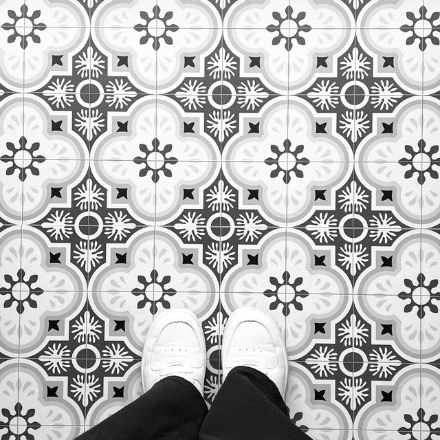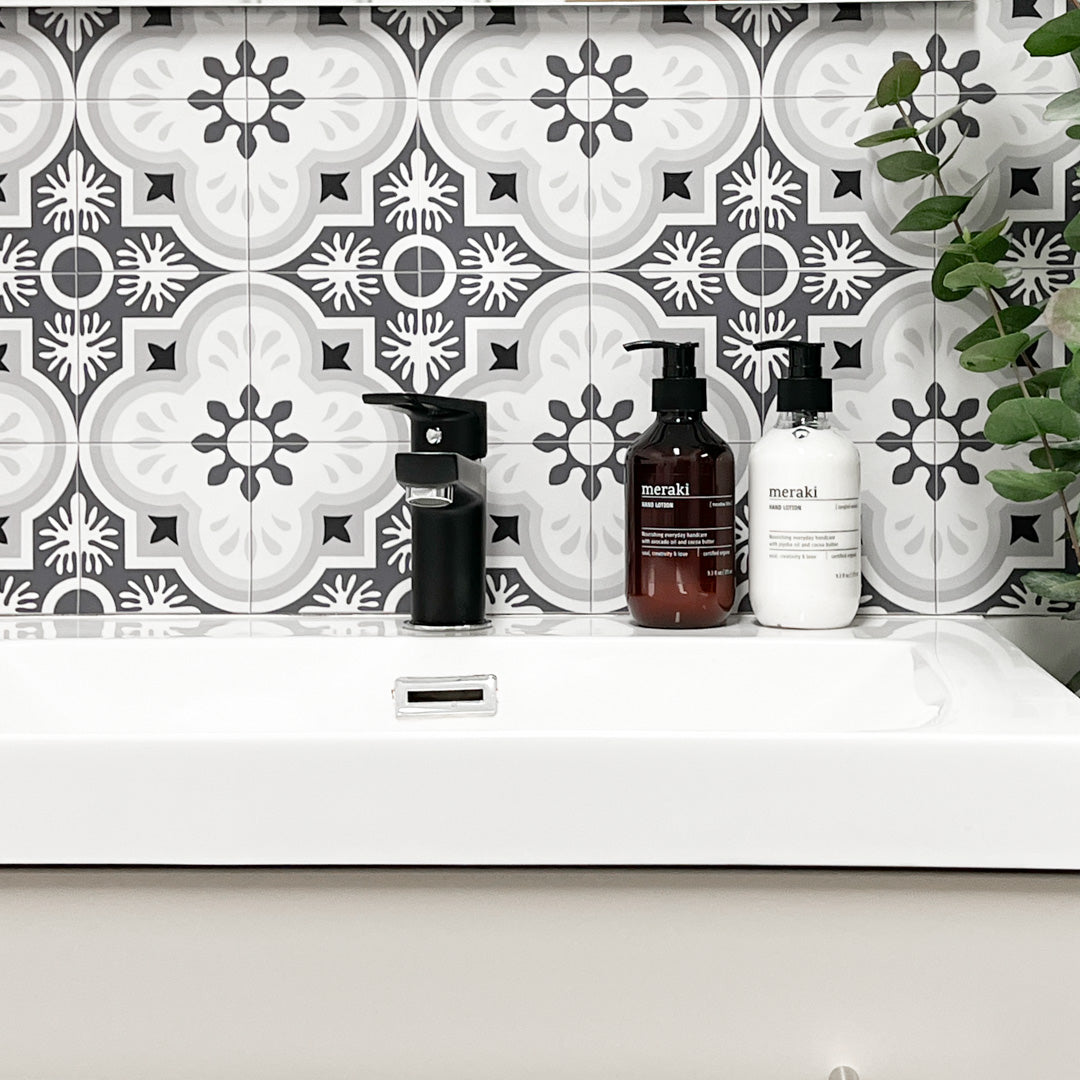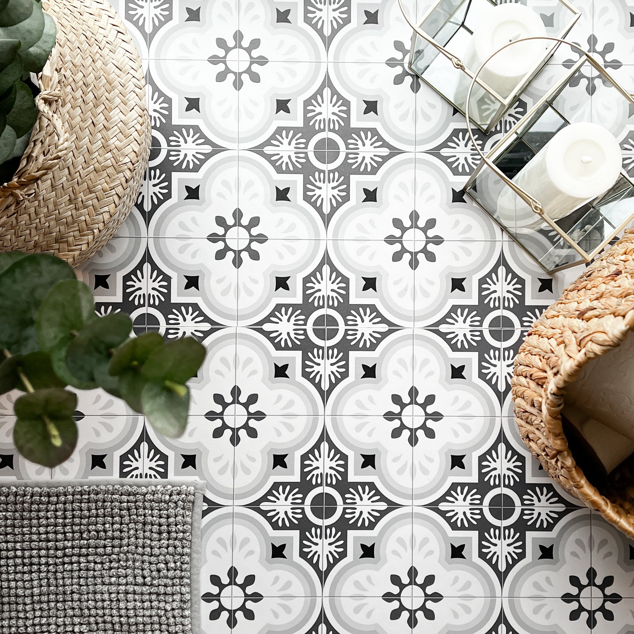 Copenhagen selvklebende fliser har et nydelig elegant, historisk design med lav kontrast. Ideelt for deg som ser etter litt mønster uten at det er for overbærende.