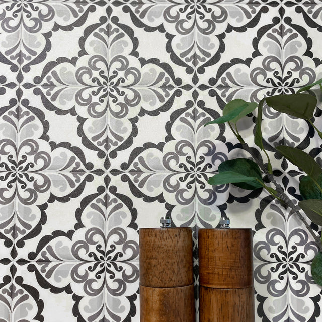 Lisbonne självhäftande plattor har en härlig vintagedesign som passar perfekt in i hemmet. Kakelplattorna har ett jättefint vintagemönster i vitt och svart, och blir lika snyggt på golvet som på väggen.
