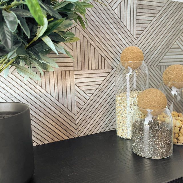 Oda självhäftande plattor har en härlig tidlös design som passar perfekt in i ett nordiskt hem. Kakelplattorna imiterar trä och har ett härligt mönster.
