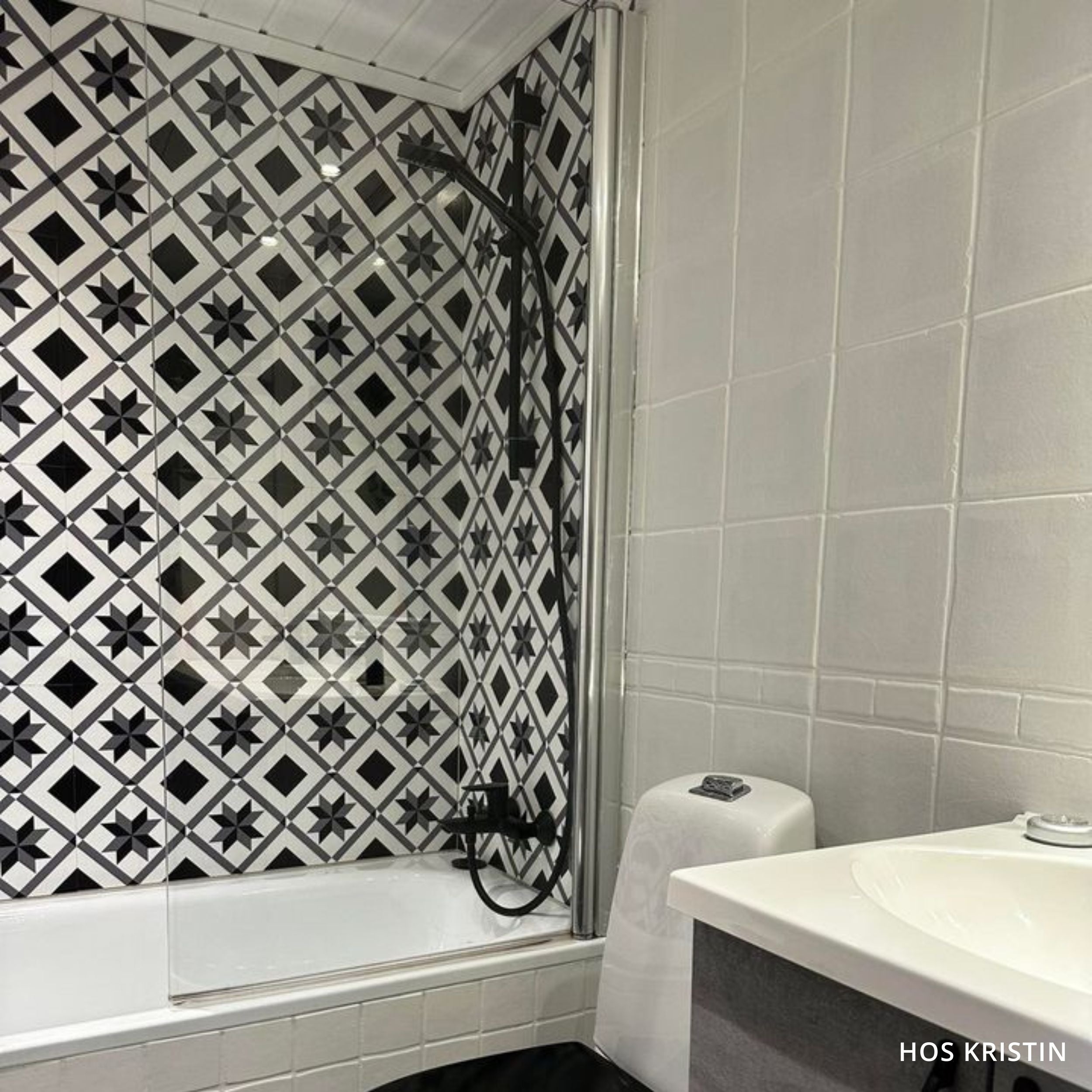 Oslo självhäftande plattor har en tidlös och klassisk design i svart och vitt. Kakelplattorna kan modernisera badrumsväggen, duschen, köket... ja, var du vill... på bara några minuter.