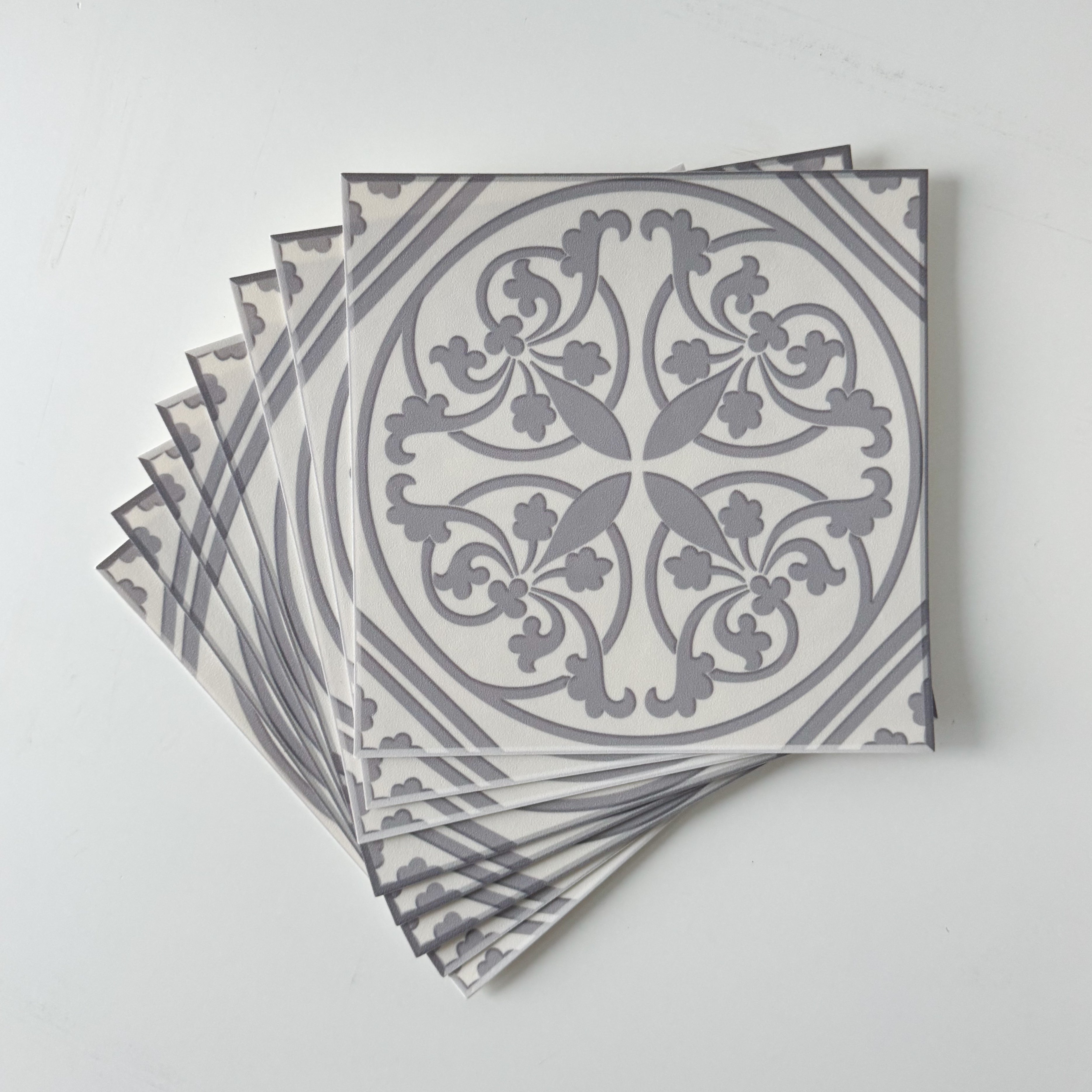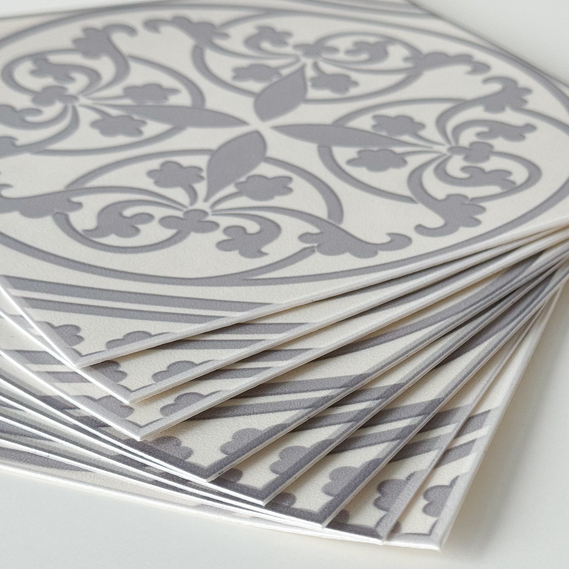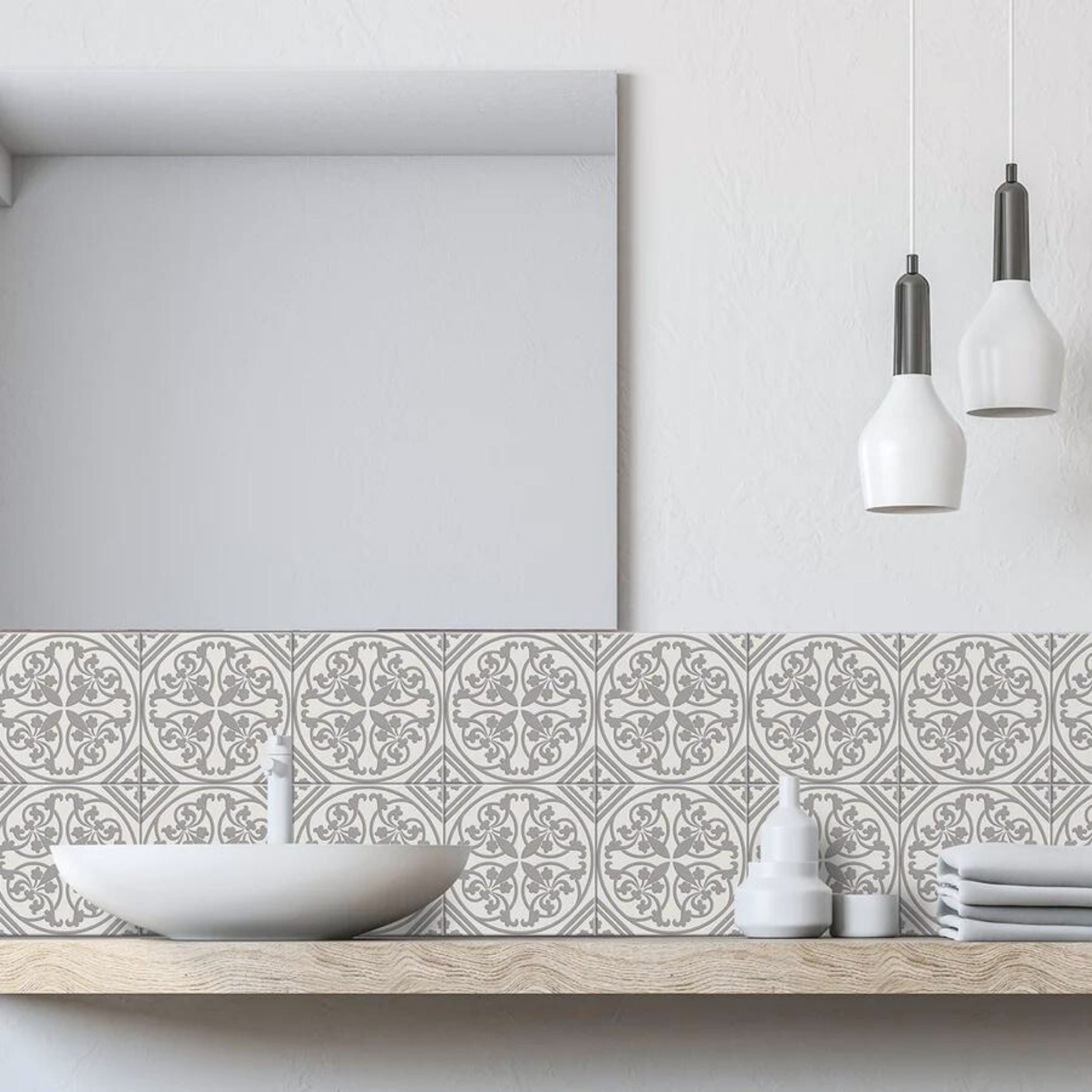Tavira antikk er en nydelig selvklebende flis inspirert av portugisiske fliser. Dens gråe motiv på en dempet bakgrunn av beige gir flisen en vintage følelse. Nydelig på både vegg og gulv.