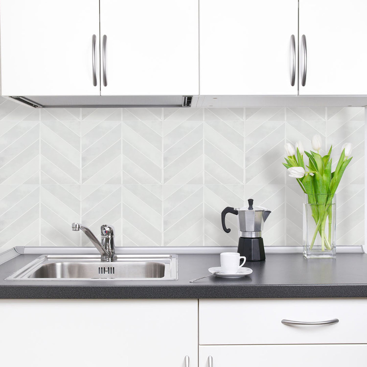 Exempel: Evelina vita självhäftande väggplattor